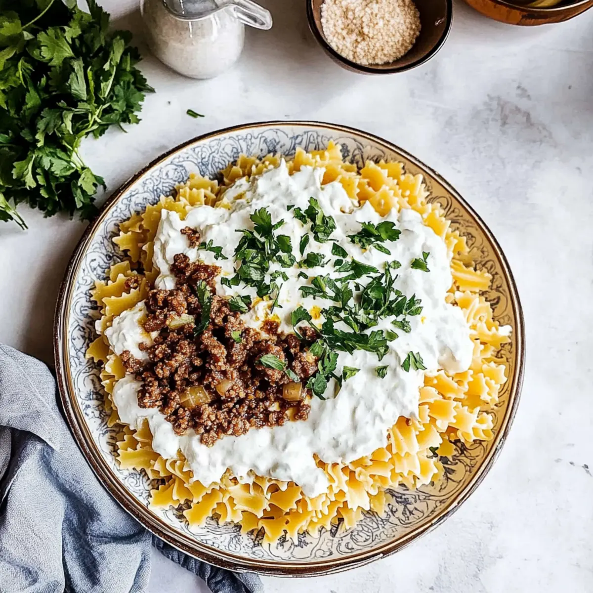As I perused my spice cabinet, a fragrant blend of allspice and cinnamon caught my attention, transporting me to bustling Middle Eastern markets. It’s that irresistible aroma that inspired this 30-Minute Arabic Pasta with Easy Yogurt Sauce. A perfect fusion of creamy yogurt and spiced ground beef, this delightful dish brings a unique twist to your dinner table without the fuss. Imagine delighting your loved ones with a warm meal that’s not only quick to prepare but also a refreshing departure from the usual weeknight routines. With this recipe, you’ll enjoy the comforting embrace of pasta along with a tangy yogurt sauce that invigorates every bite. Curious about how to elevate your next dinner with this Middle Eastern-inspired feast? Let’s dive into the details!
