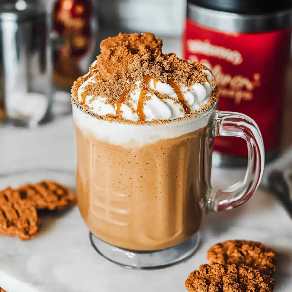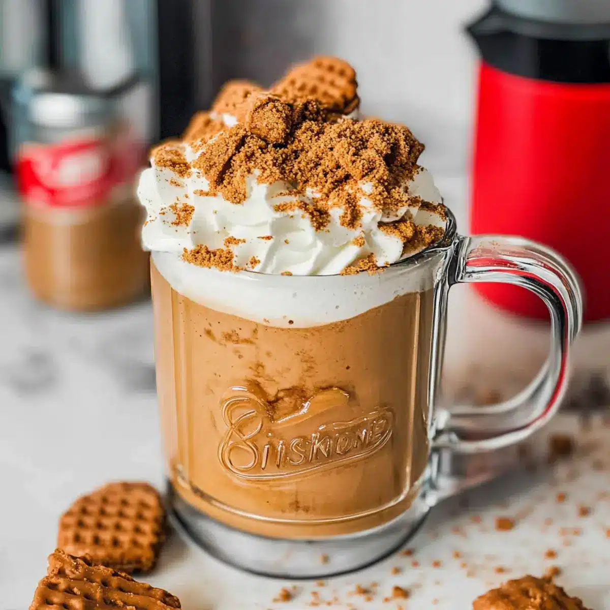 - Top with whipped cream, crushed Biscoff cookies, and a drizzle of cookie butter. Serve immediately.
