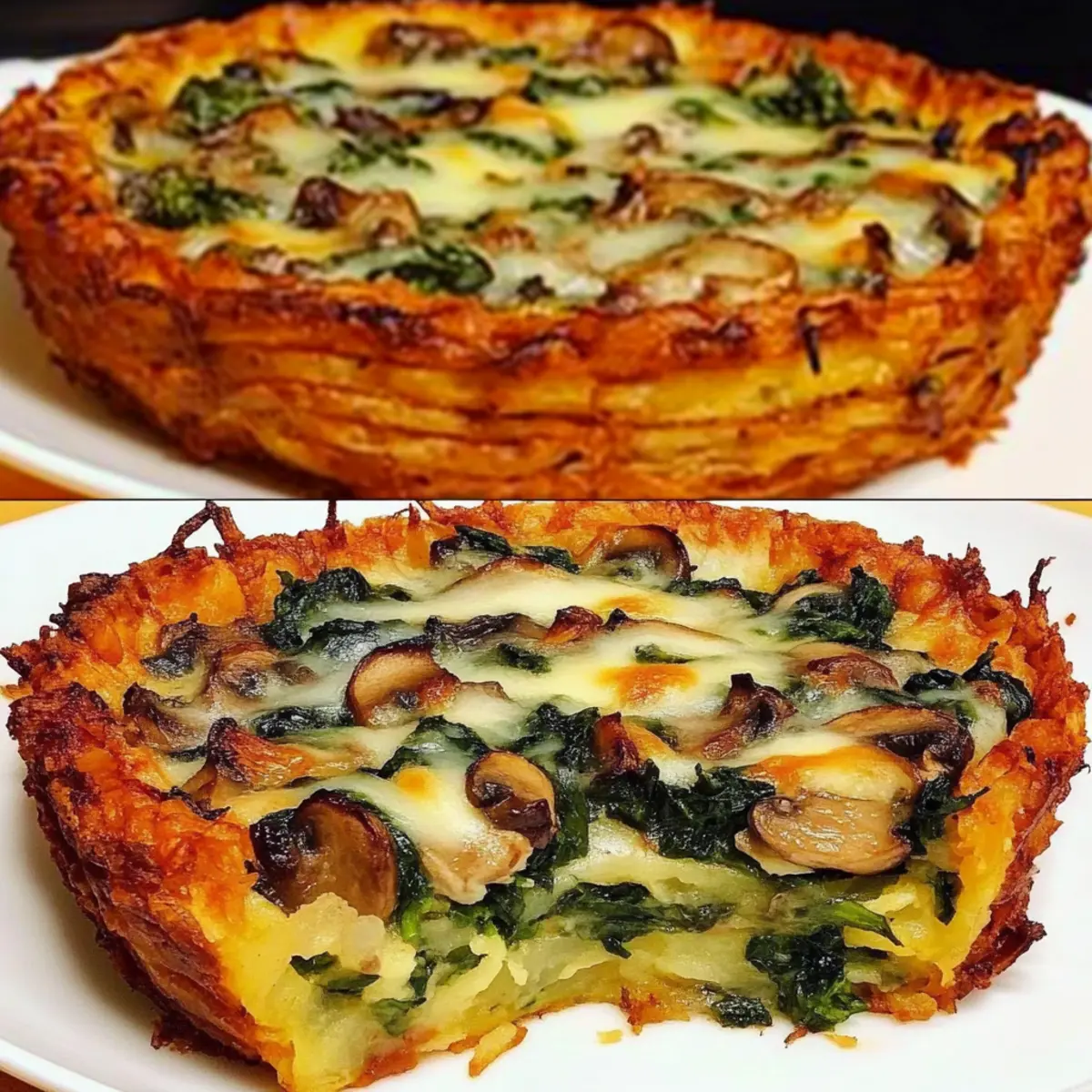 Crispy Grated Potato Pie with Spinach and Mushrooms Bliss