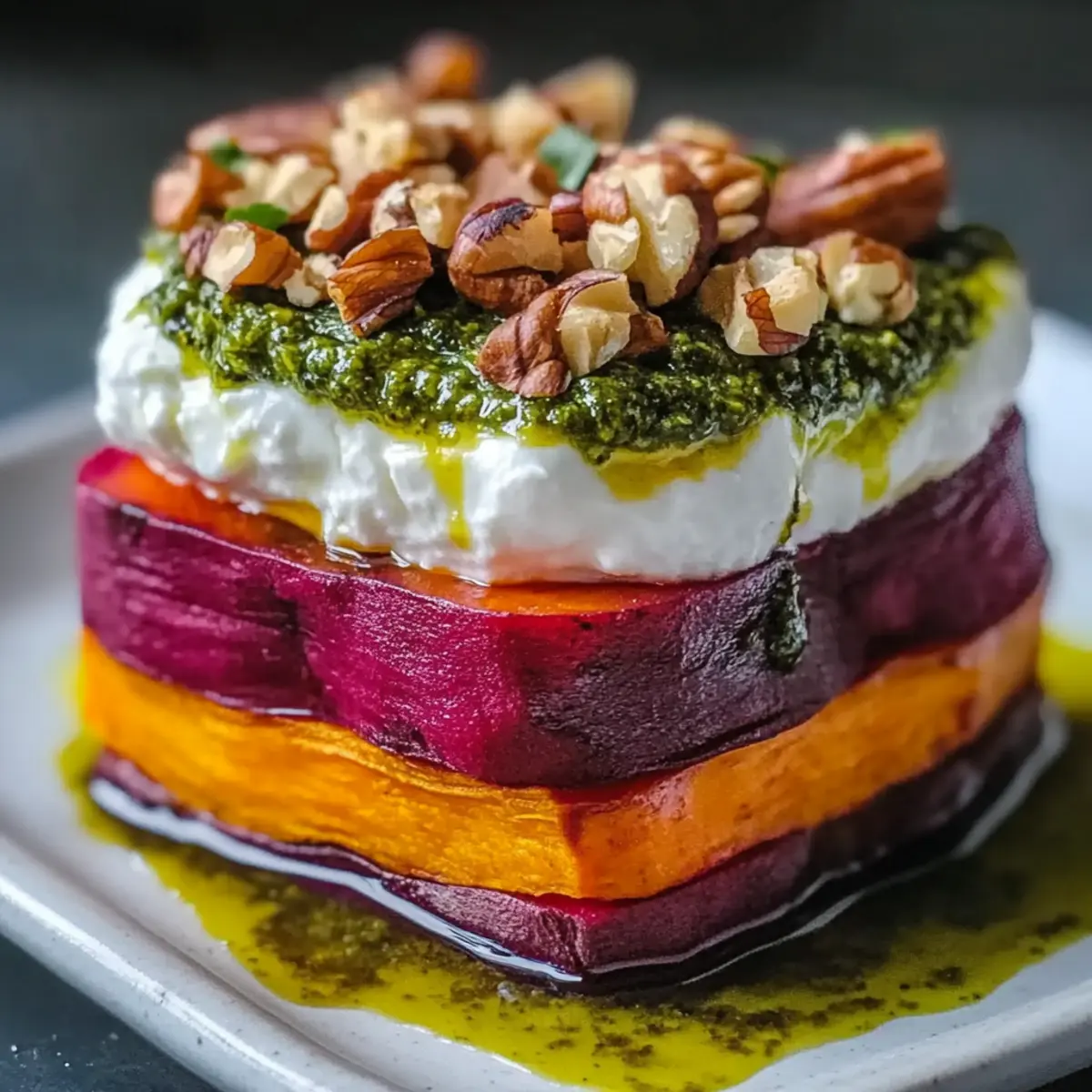 Sweet Potato & Beet Stacks with Pesto: Colorful & Delicious!