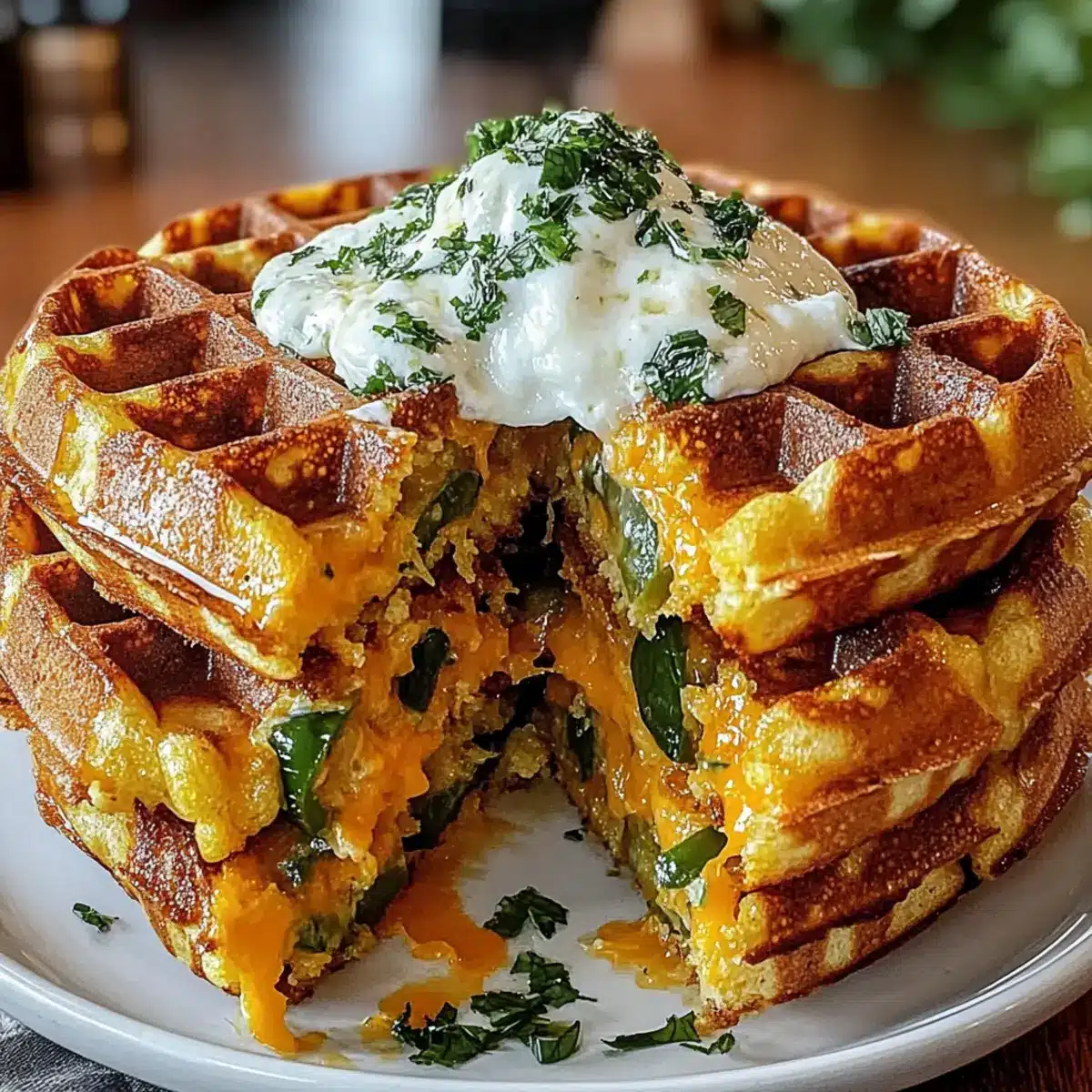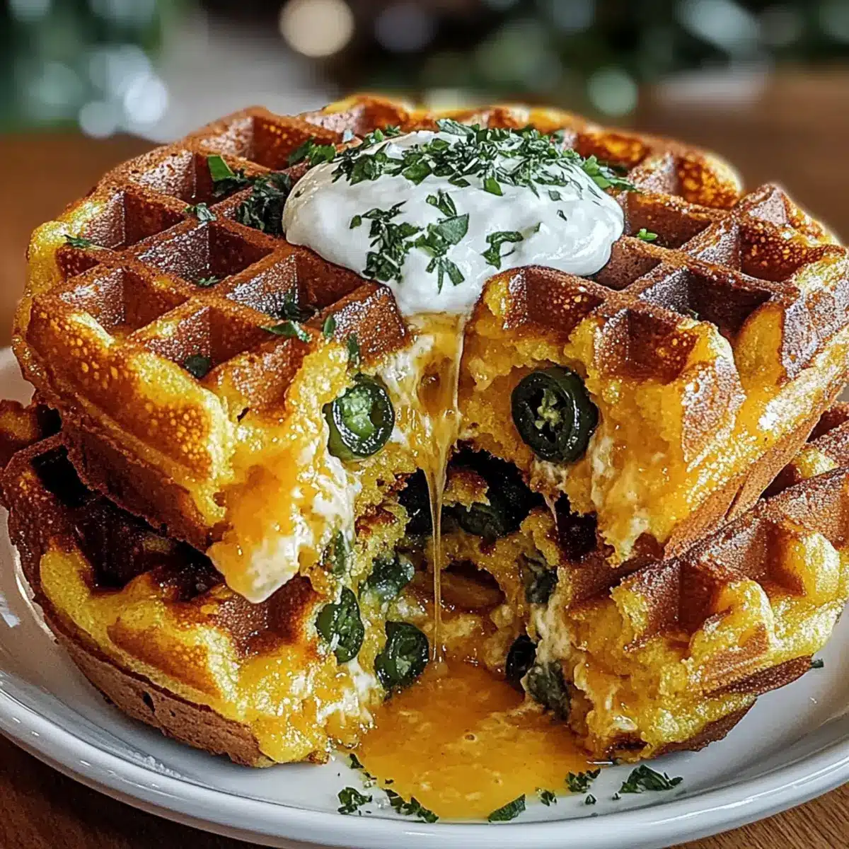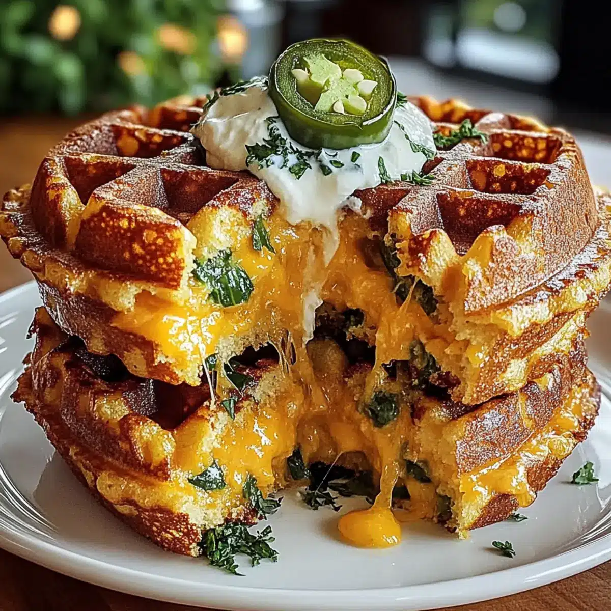 Cheddar Jalapeño Cornbread Waffles for a Spicy Breakfast Treat