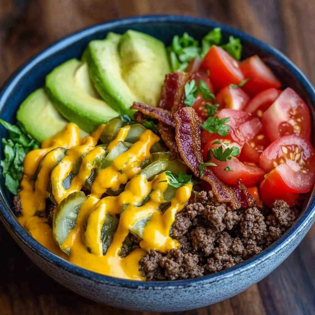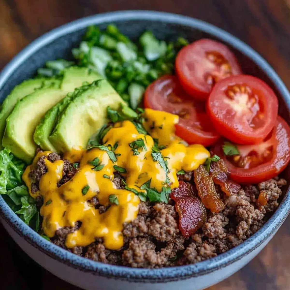 Prep Components Separately: To maintain freshness, store the cooked meat and sauce separately from the fresh veggies. This keeps your cheeseburger bowls from getting soggy.