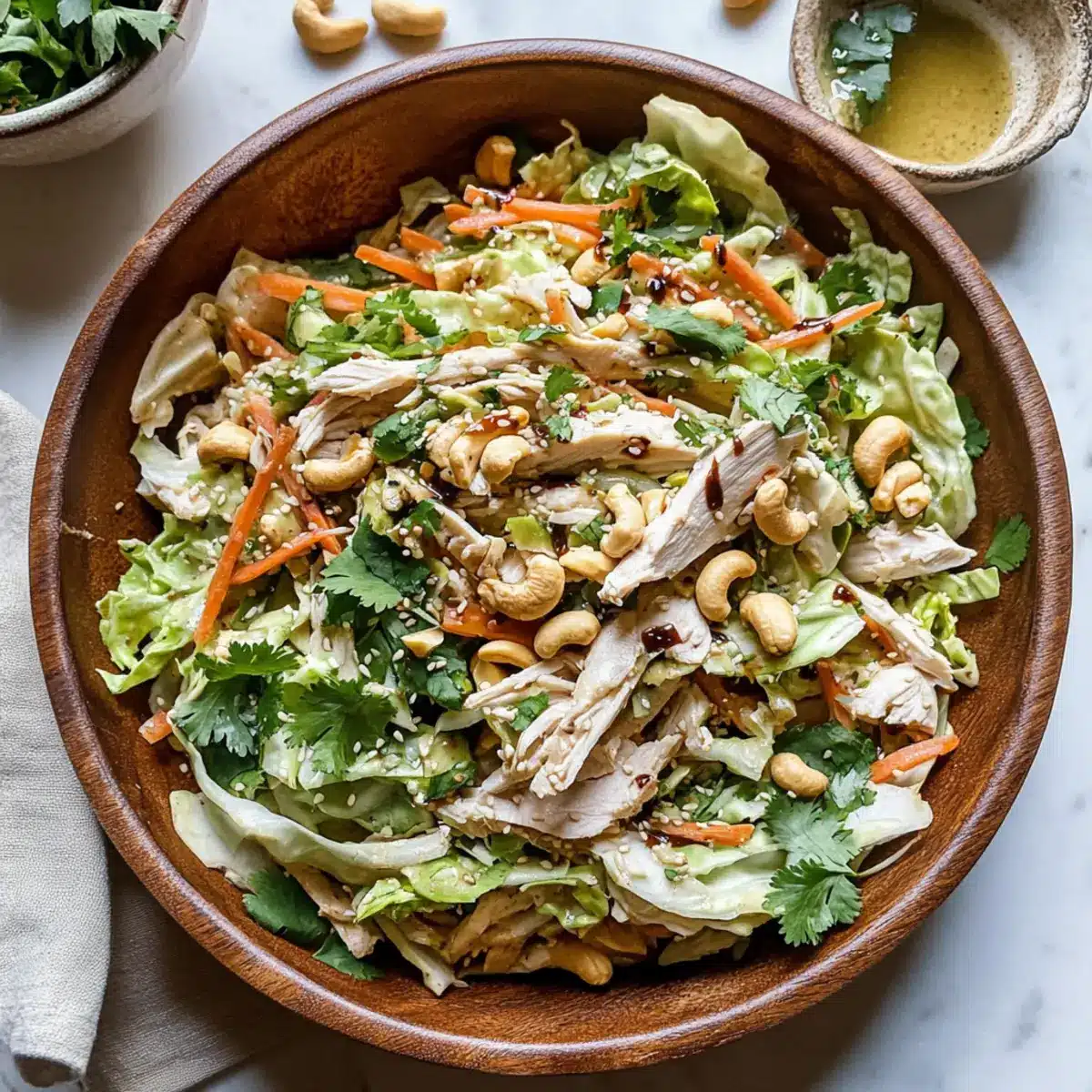 If you find your dressing is thicker than you’d like, simply whisk in a little water or additional rice vinegar, one tablespoon at a time, until you reach your desired consistency. This will help create that creamy, pourable texture that’s perfect for coating your Chicken Cashew Crunch Salad!