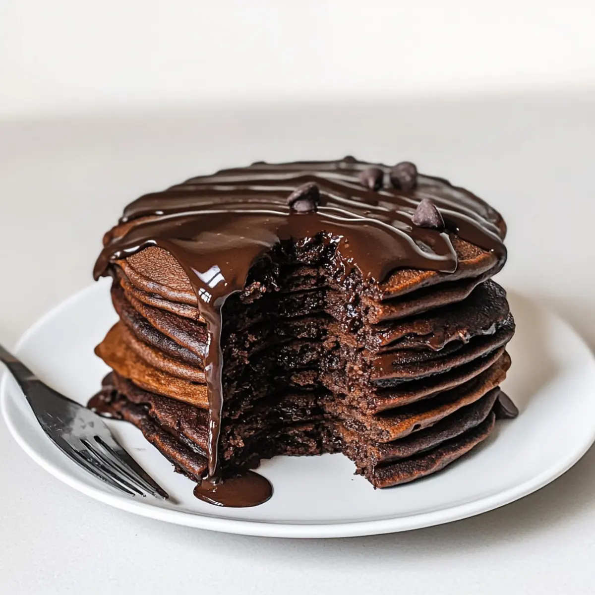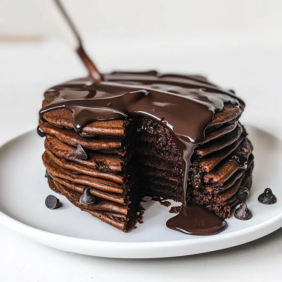 Once the pancakes are cooked, stack them high on a plate and generously drizzle the warm chocolate ganache over the top. Serve immediately to enjoy the melty goodness, and consider adding fresh berries or whipped cream for a delightful finish. Your chocolate pancakes are now a beautiful, decadent sight to behold, perfect for brightening your morning!