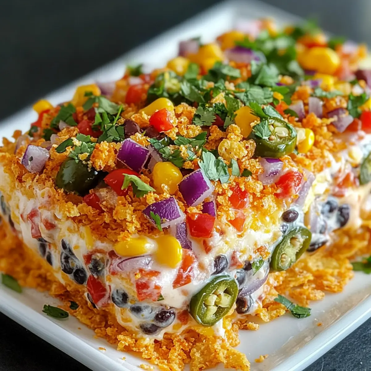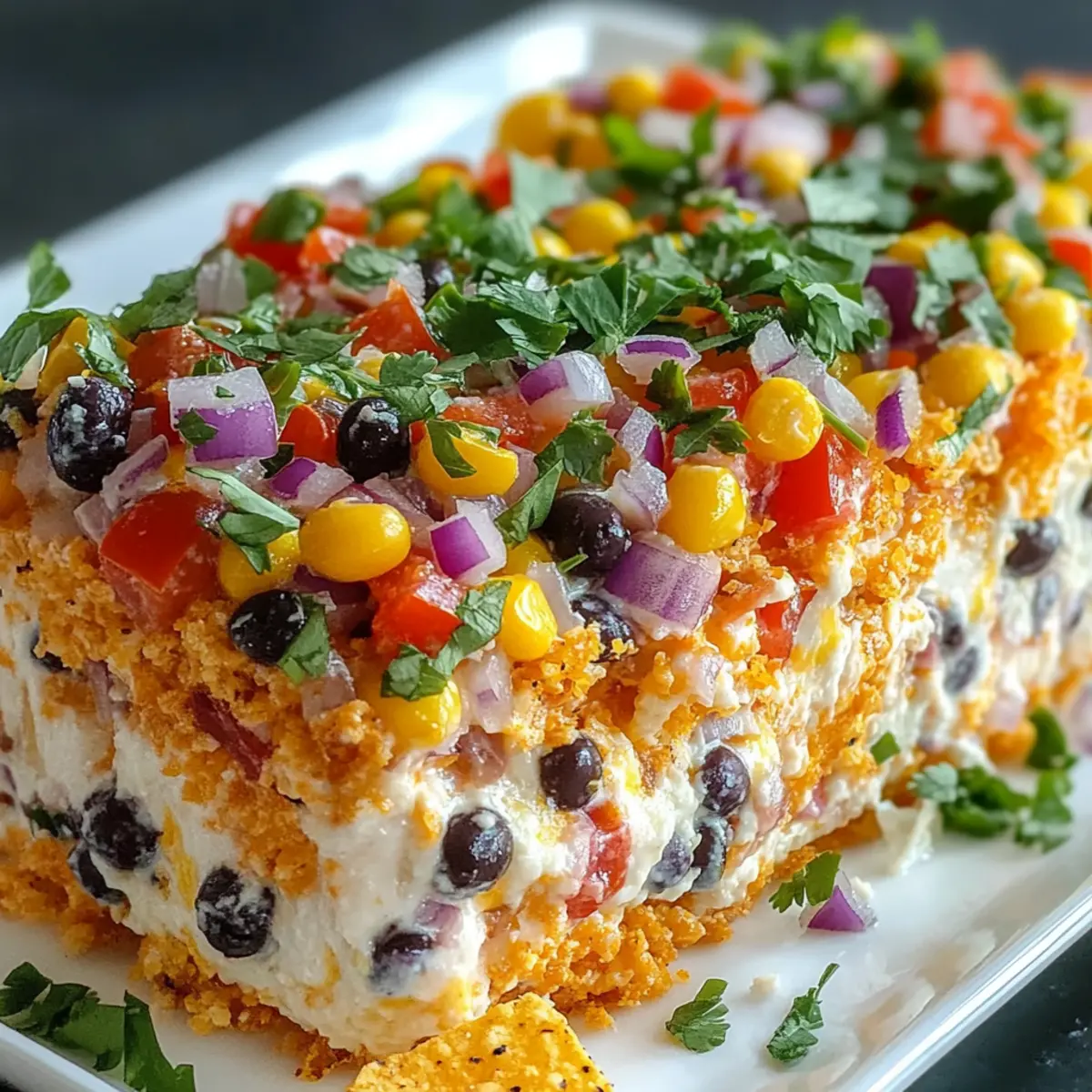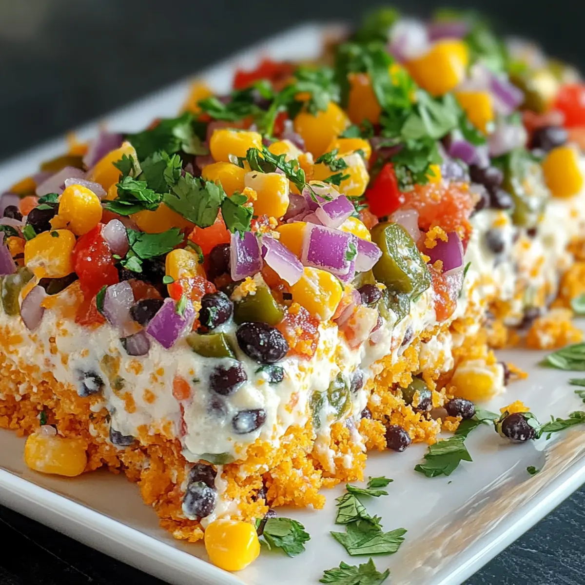 Once your Cowboy Caviar Jalapeno Popper Cheese Log is fully coated in tortilla chips, place it on a serving platter. For a fresh finish, drizzle the top with chopped cilantro, letting the vibrant green contrast with the log’s colors. This step not only enhances visual appeal but also adds a fragrant herbal note that balances the richness.