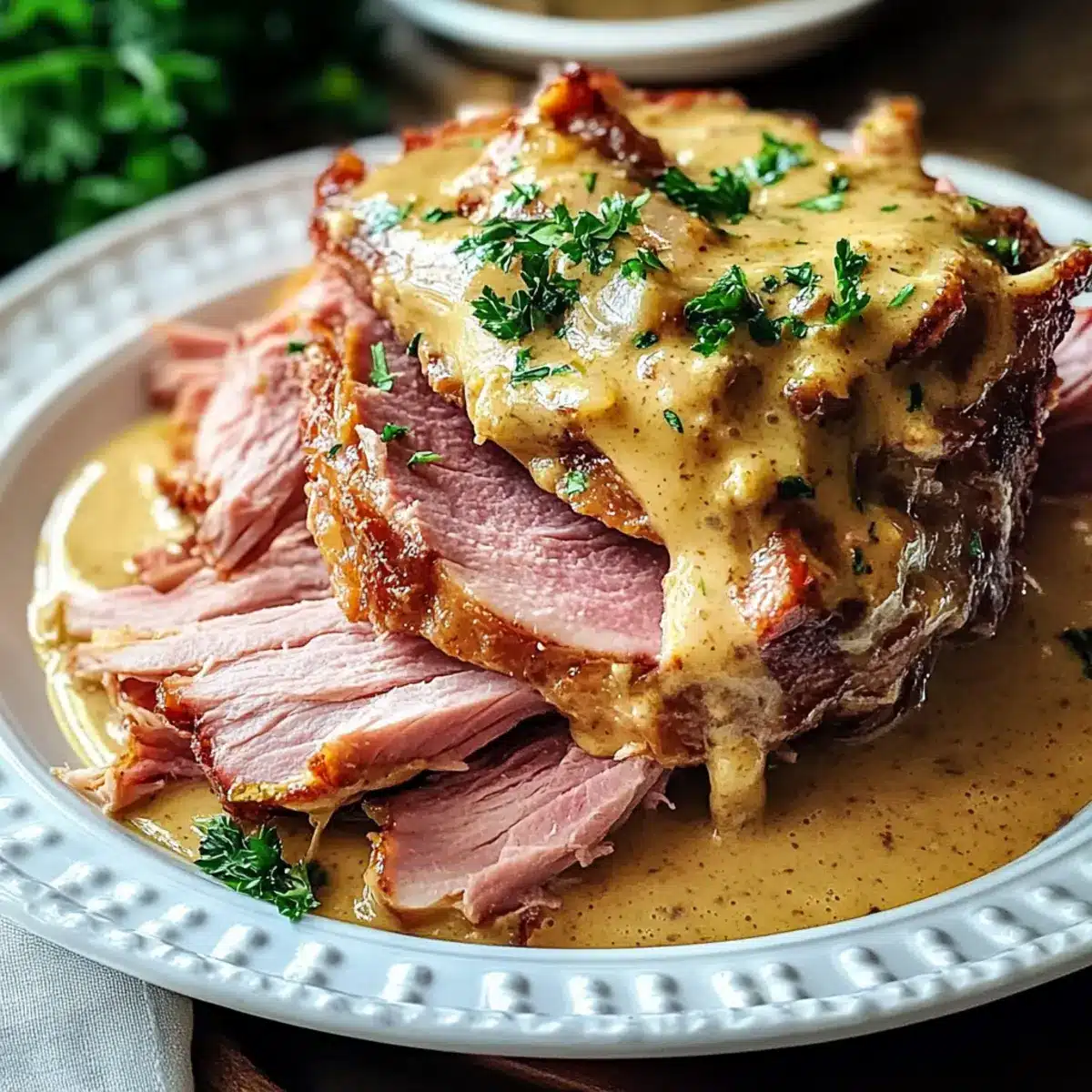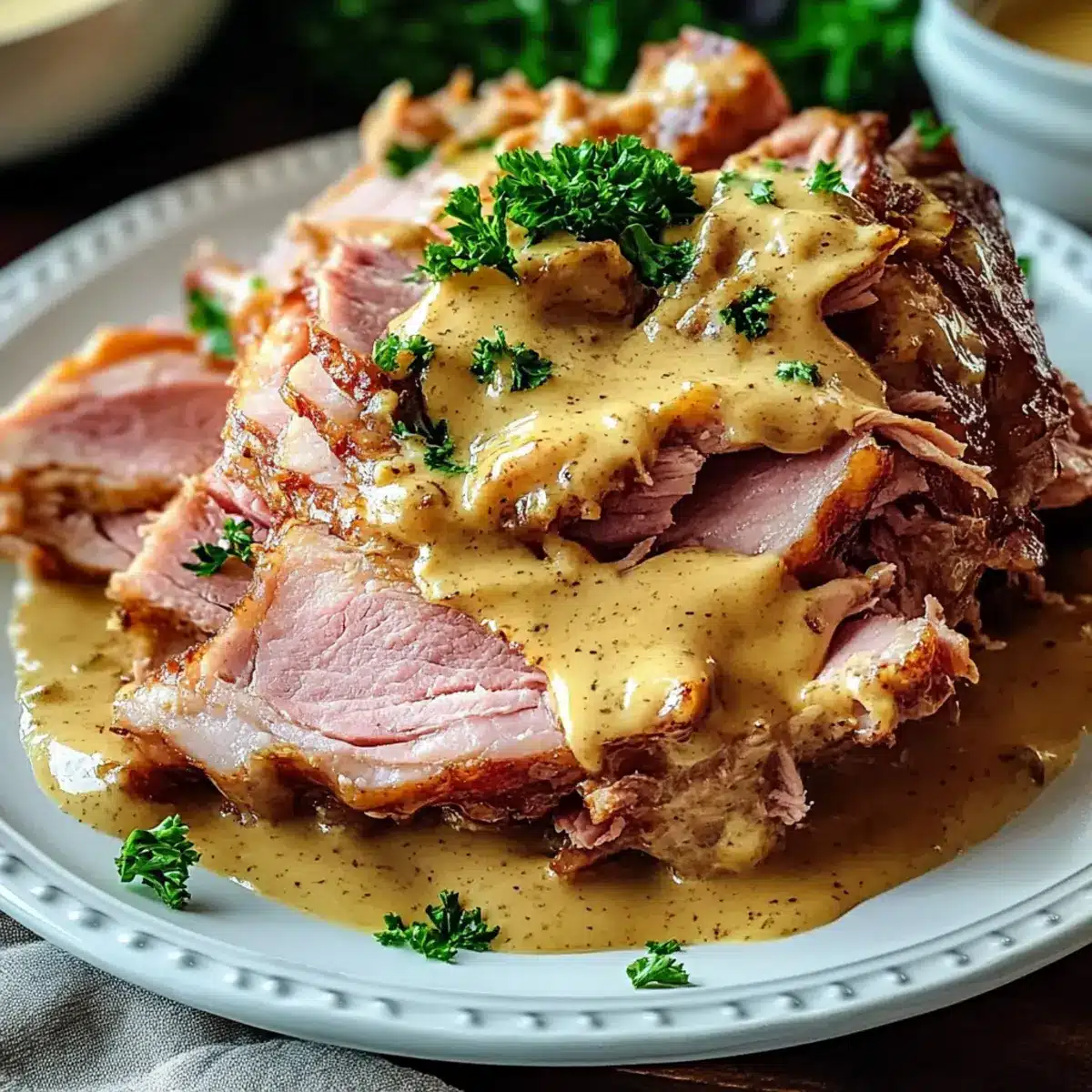 - Herbed Up: Add fresh herbs like thyme or rosemary to the sauce for aromatic notes that elevate your creamy mustard pulled ham.
