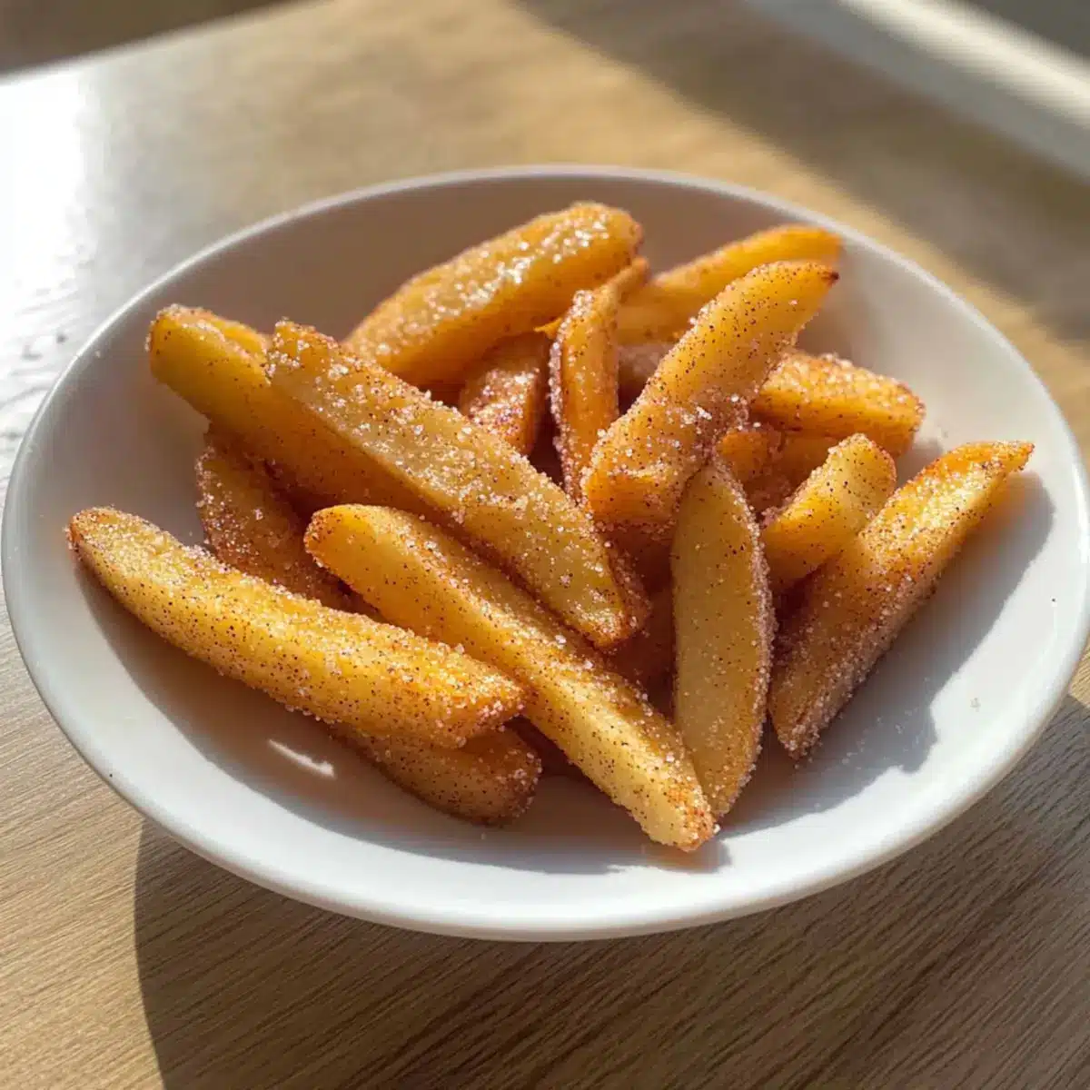 Caramel Sauce: Drizzling a bit of caramel elevates these fries into a decadent treat. The gooey sweetness pairs beautifully with the soft apple, creating a dessert that’s hard to resist.