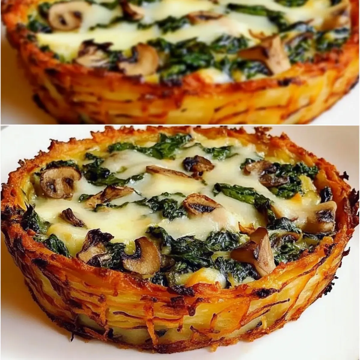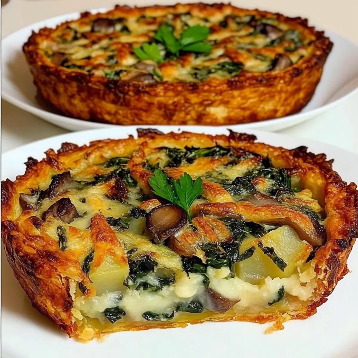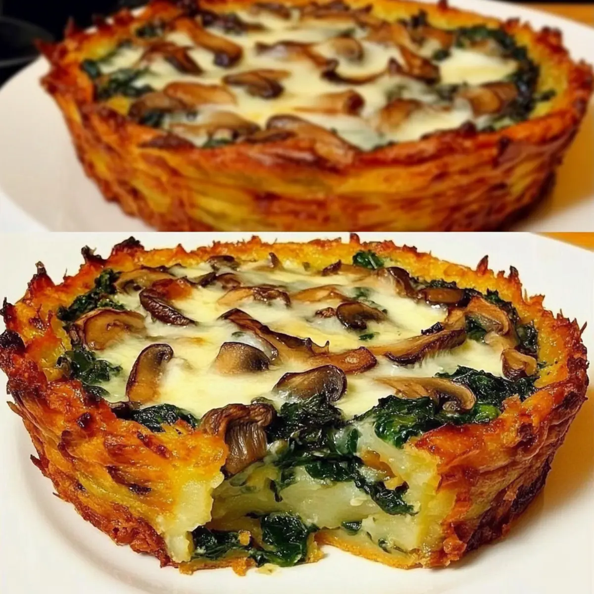 Crispy Grated Potato Pie with Spinach and Mushrooms Delight
