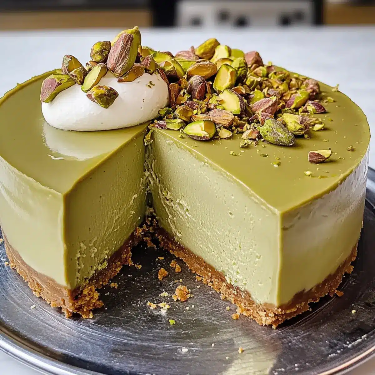 - Graham Cracker Twist: Experiment by swapping crushed graham crackers with crushed ginger cookies for a zesty crust that complements the pistachio filling wonderfully.