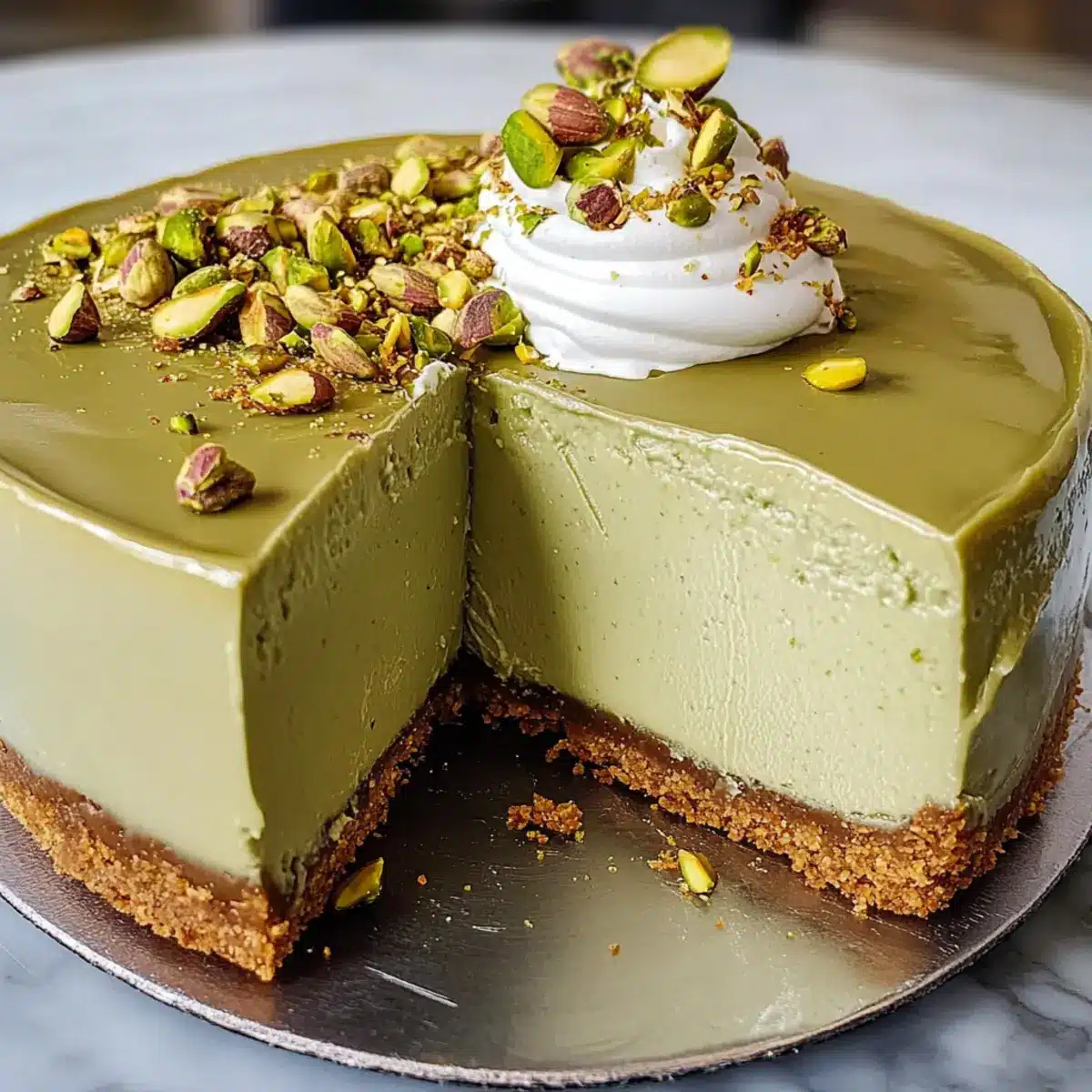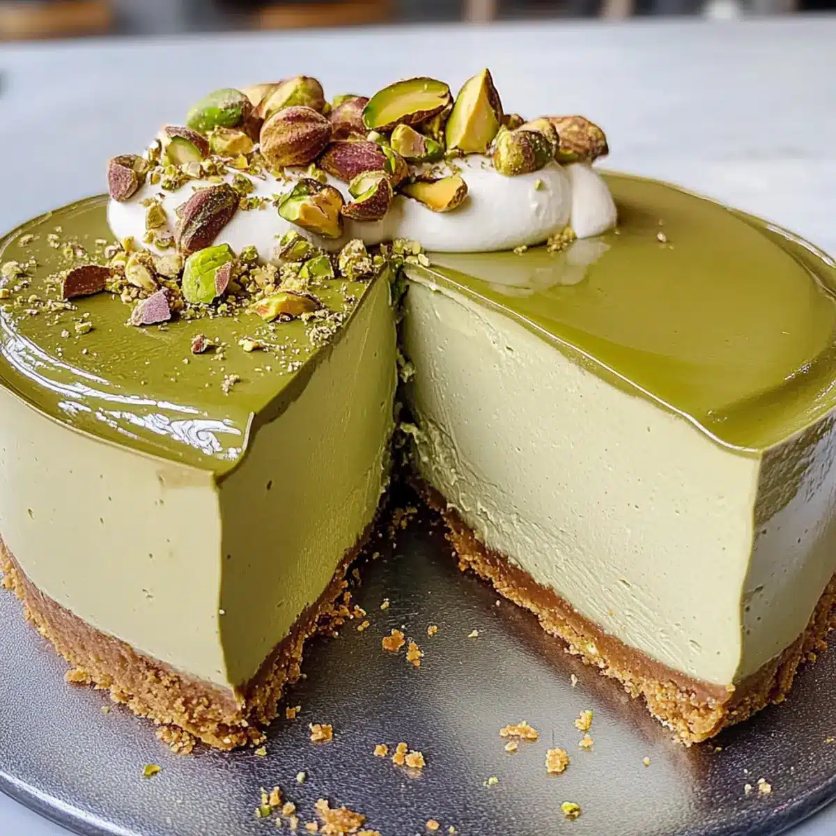 With a gentle crunch followed by a creamy indulgence, this Pistachio Cheesecake will take your dessert game to a whole new level. No need to stress about complicated baking techniques—this easy-to-make, no-bake beauty requires just a few hours in the fridge to transform into a luscious treat that’s perfect for any celebration. The delightful combination of rich creaminess and the nutty flavor of pistachios makes it a standout dish that will have your guests raving. Plus, the buttery graham cracker crust adds a satisfying crunch that complements the silky filling flawlessly. So, why not whip up this ultimate delicious Pistachio Cheesecake and treat yourself to a slice of happiness? Are you ready to impress your friends and family with this show-stopping dessert?