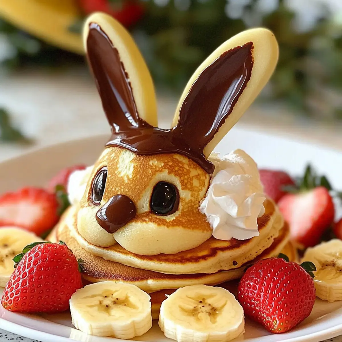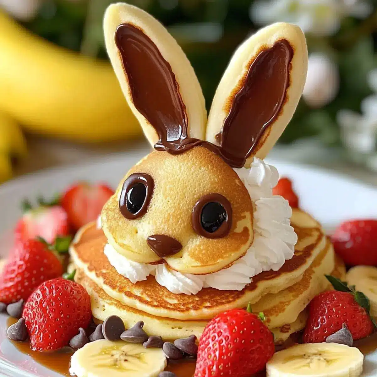 These Easter Bunny Pancakes are a fantastic option for meal prep, saving you time on busy mornings! You can prepare the pancake batter up to 24 hours in advance and store it in the refrigerator; just remember to give it a gentle stir before cooking to ensure the texture remains fluffy. Additionally, you can pre-slice the bananas and strawberries, storing them in an airtight container to keep them fresh for up to 3 days. When it’s time to serve, simply cook the pancakes in your skillet, complete the adorable bunny faces with chocolate chips, and finish with whipped cream and fruit. Enjoy these delightful pancakes that are just as delicious, all while making your brunch preparation a breeze!
