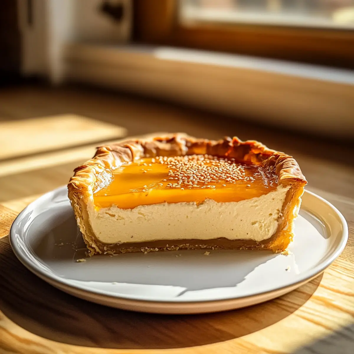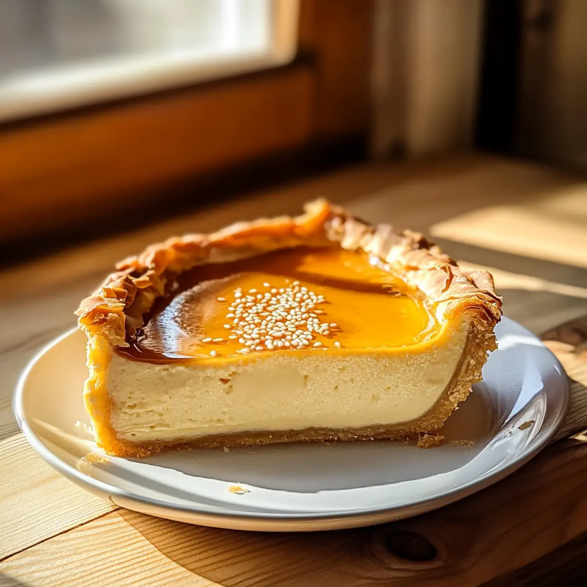 Once baked, remove the pie from the oven and allow it to cool slightly, about 10 minutes. Drizzle warmed honey generously over the top for added sweetness and a shiny finish. For an extra touch, sprinkle with toasted sesame seeds; this enhances both flavor and texture. Serve your Golden Greek Honey Pie warm or at room temperature, delighting in its comforting aroma!