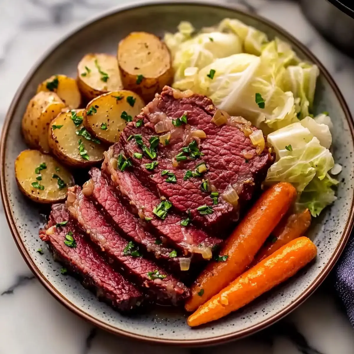 Slicing Technique: Slice the corned beef against the grain. This ensures each piece remains tender, making every bite delightful.