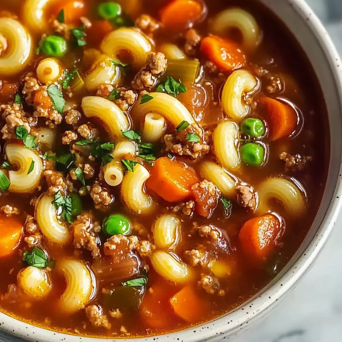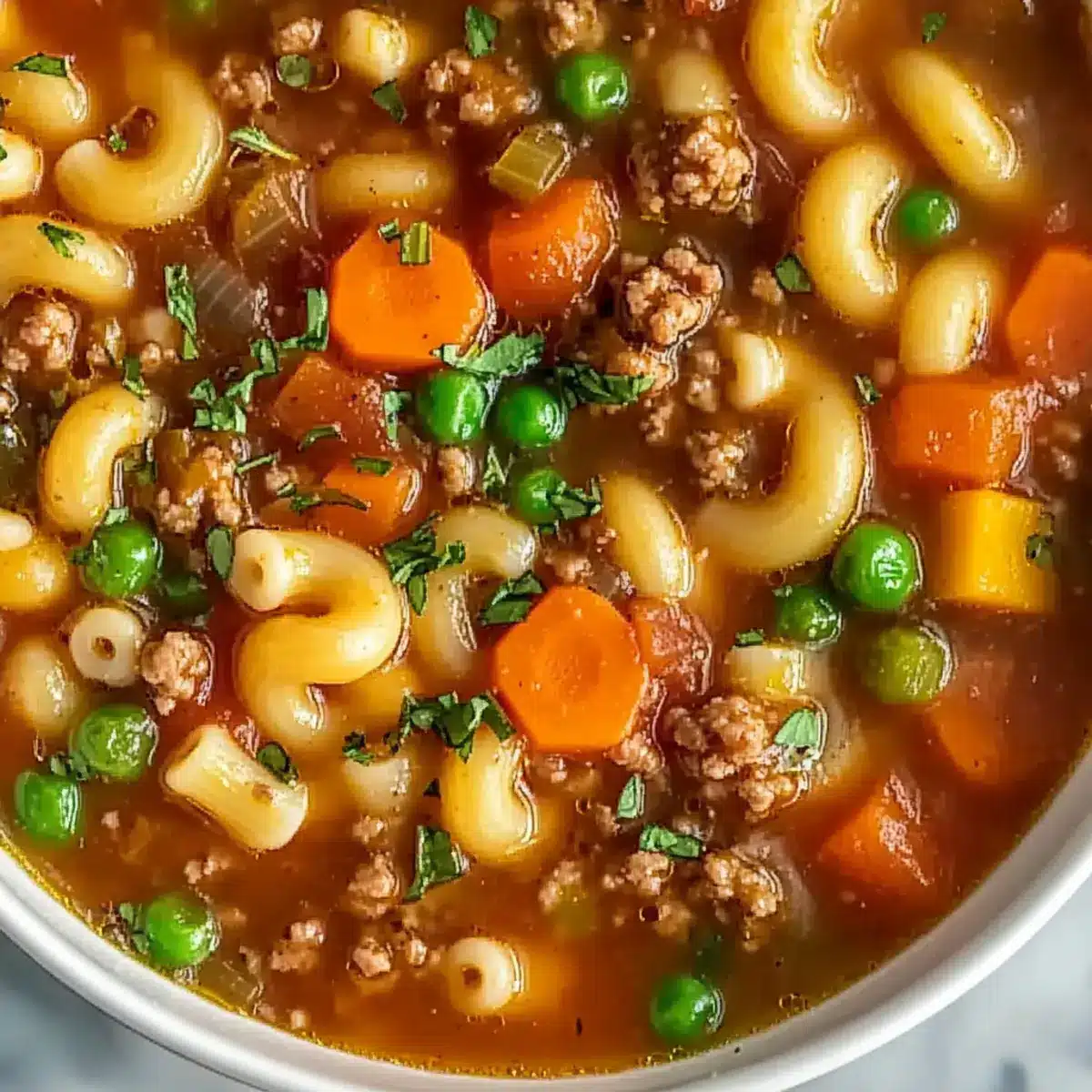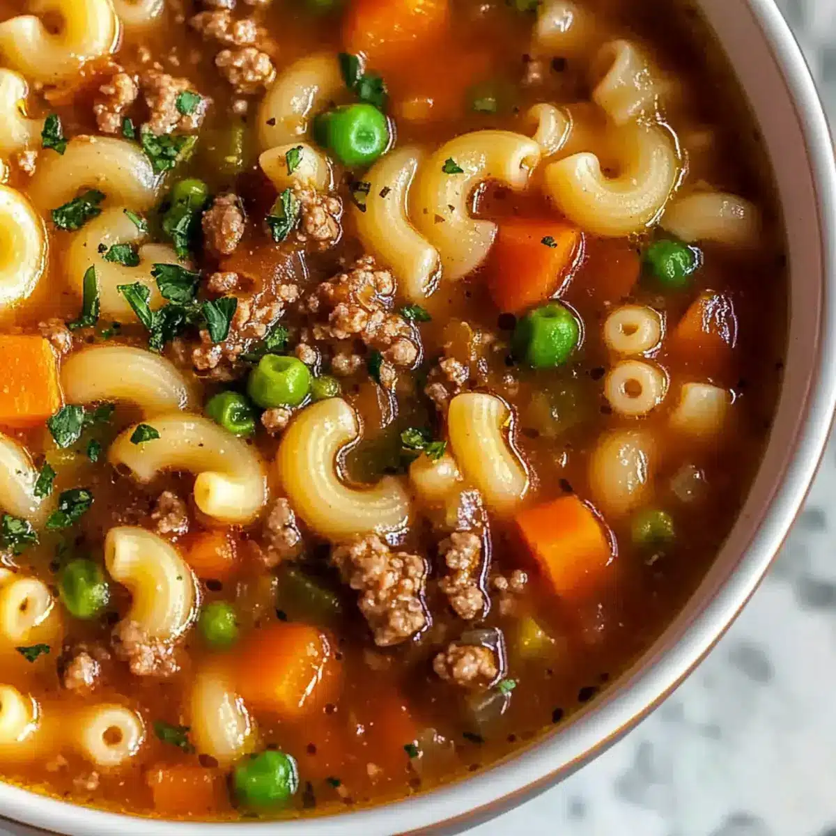 Definitely! This recipe can easily be adapted for various dietary needs. For a gluten-free version, swap out regular macaroni for gluten-free pasta. If you’re looking for a lower-fat option, substitute ground beef with ground turkey or chicken. Always check the labels when using canned items to ensure they are allergy-friendly to those you may be preparing the soup for. It’s great that you want to cater to everyone’s needs!