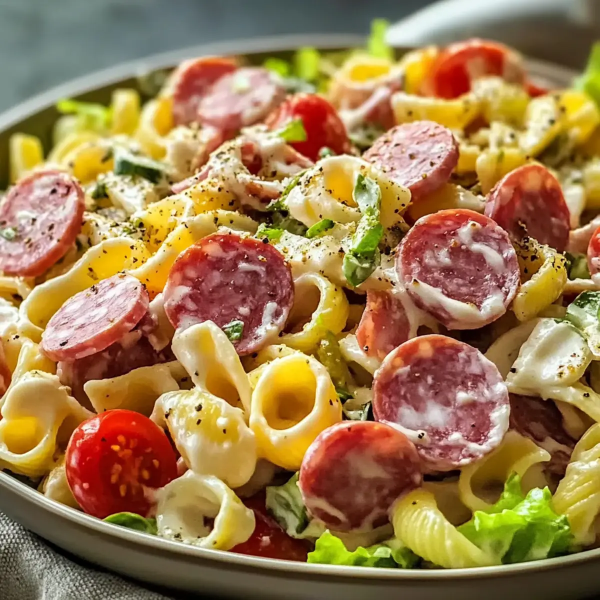 Zesty Italian Grinder Pasta Salad with Salami and Provolone Delight