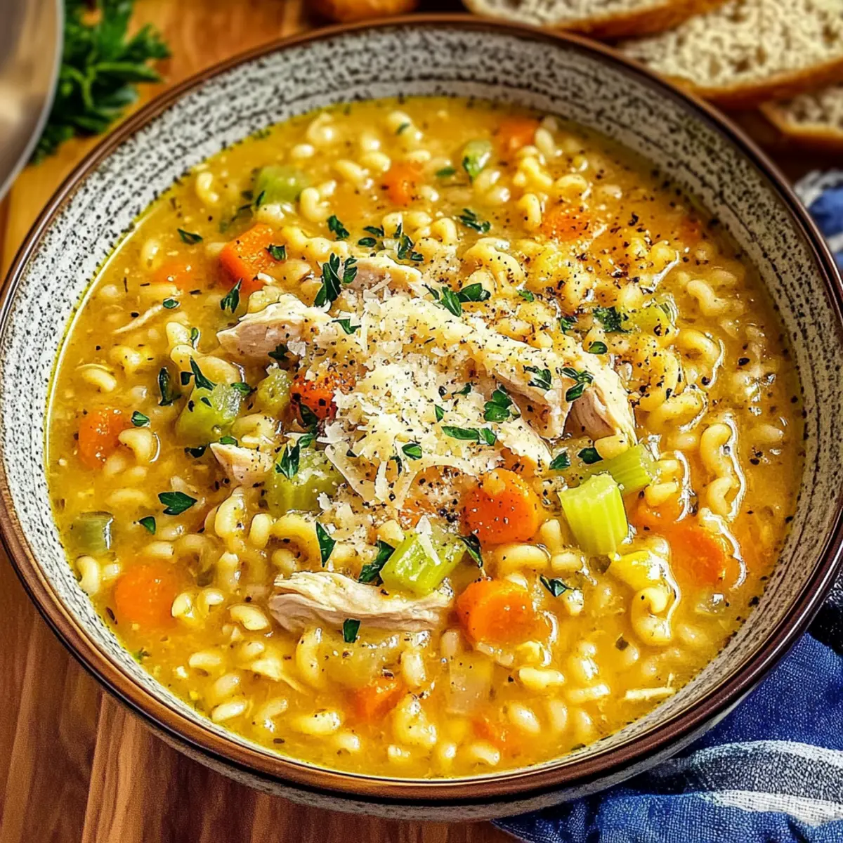 These Italian Penicillin Soup recipe make-ahead tips will save you time during busy weeknights! You can pre-chop all your vegetables (onion, carrots, celery, and garlic) and store them in the refrigerator for up to 3 days. Additionally, you can cook and shred the chicken breast a day in advance, then refrigerate it to preserve flavor and moisture. For the best results, store the soup without pasta if you plan to freeze it—this helps maintain texture. Simply reheat the soup on the stove, add the cooked pasta during the last few minutes, and stir in fresh lemon juice and parsley right before serving. You’ll have a warm, comforting bowl of Italian Penicillin Soup ready to enjoy!