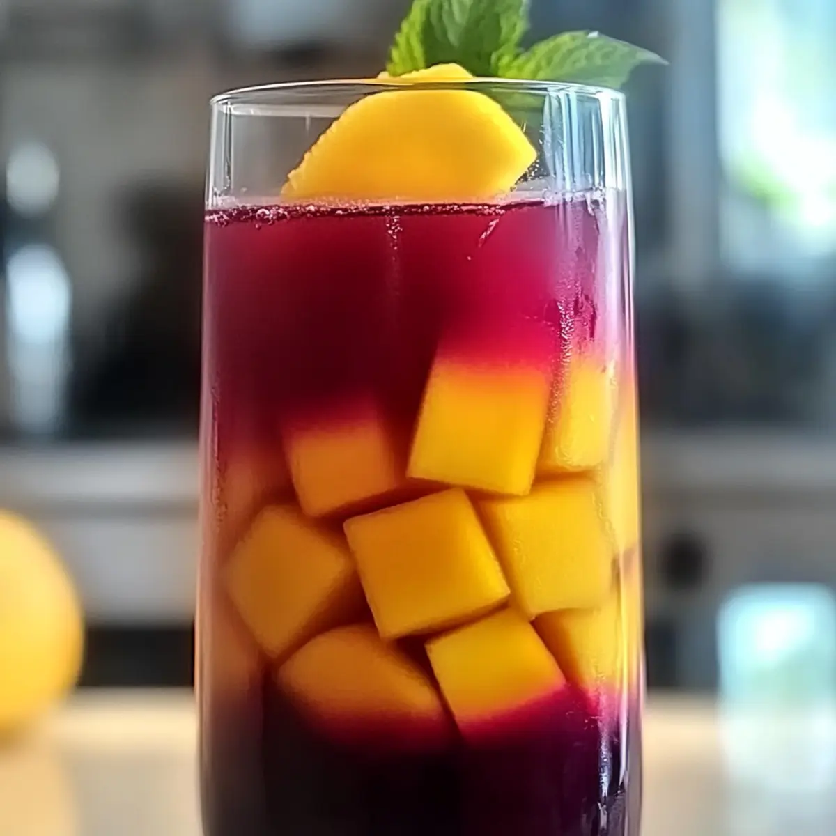 Now, for the star of the show! Dice your ripe mango into small pieces and blend until smooth in a separate bowl or blender. Gently stir the mango puree into the tea mixture, lending its sweetness and tropical flavor to the drink. The vibrant colors will inspire thoughts of sunny days ahead!