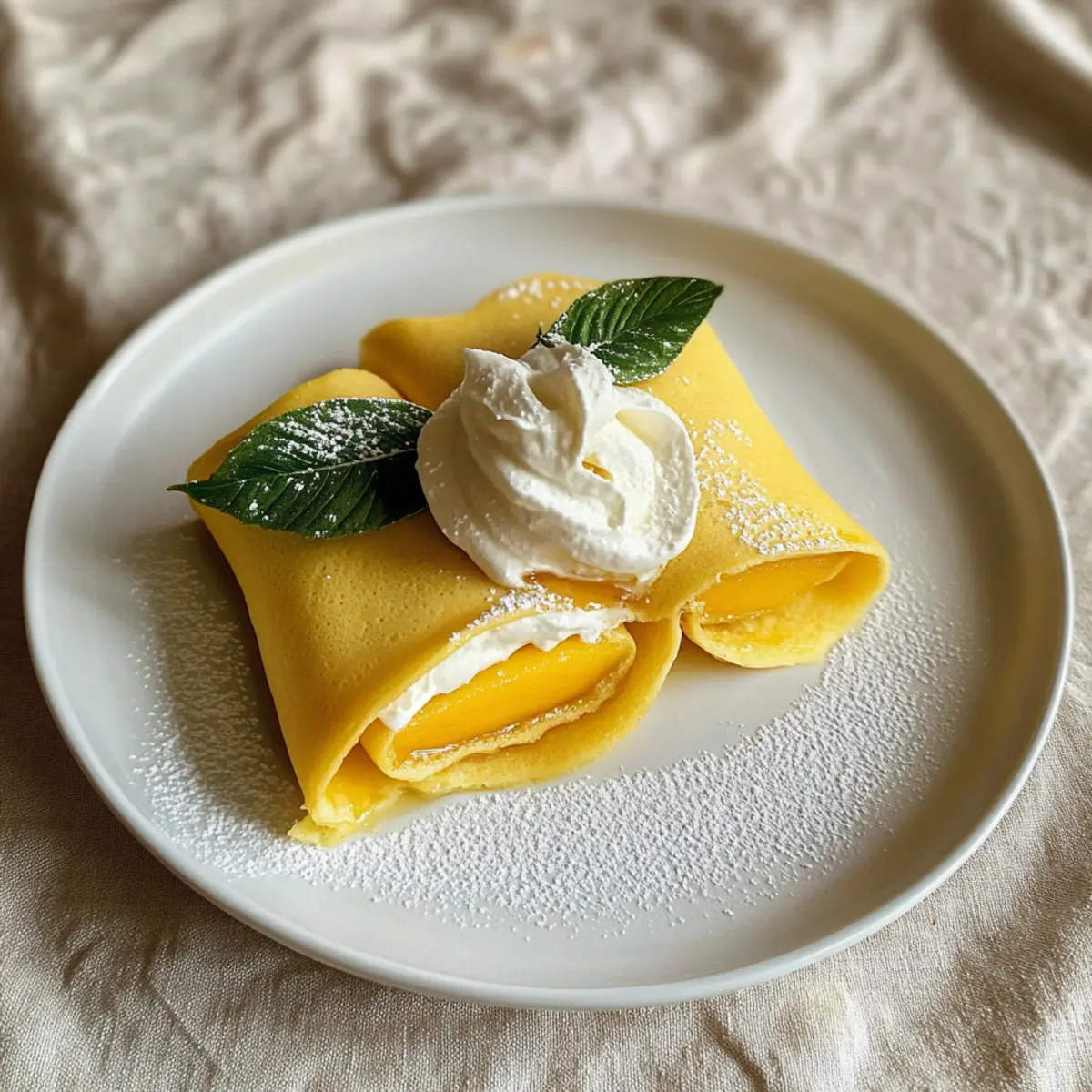 To fold the pancakes, tuck in the sides over the filling and gently roll from the bottom, forming neat parcels. Ensure that the seam side is placed down on the plate to keep the pancakes secure. Dust them with icing sugar for a beautiful presentation, and consider garnishing with a sprig of fresh mint for that extra touch of elegance.