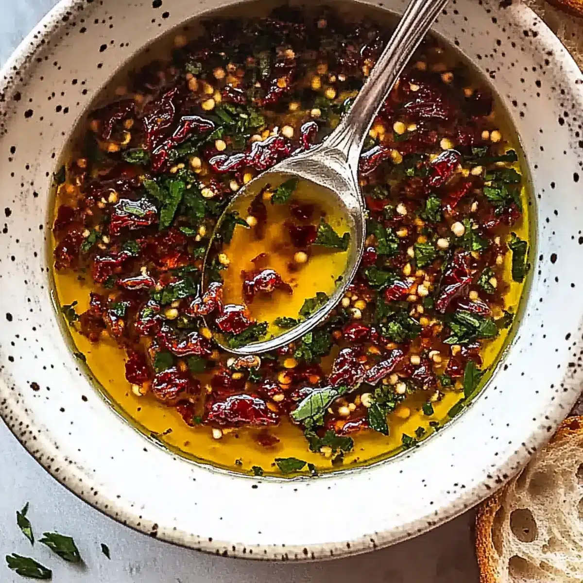 With these ingredients, you’re all set to create your delightful Mediterranean Sun Dried Tomato Garlic Olive Oil Dip, ready to impress your guests in no time!