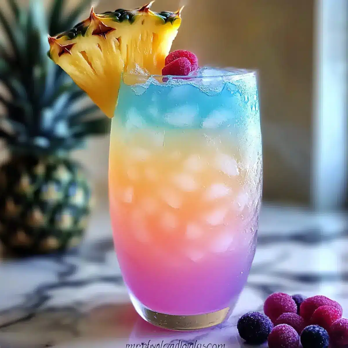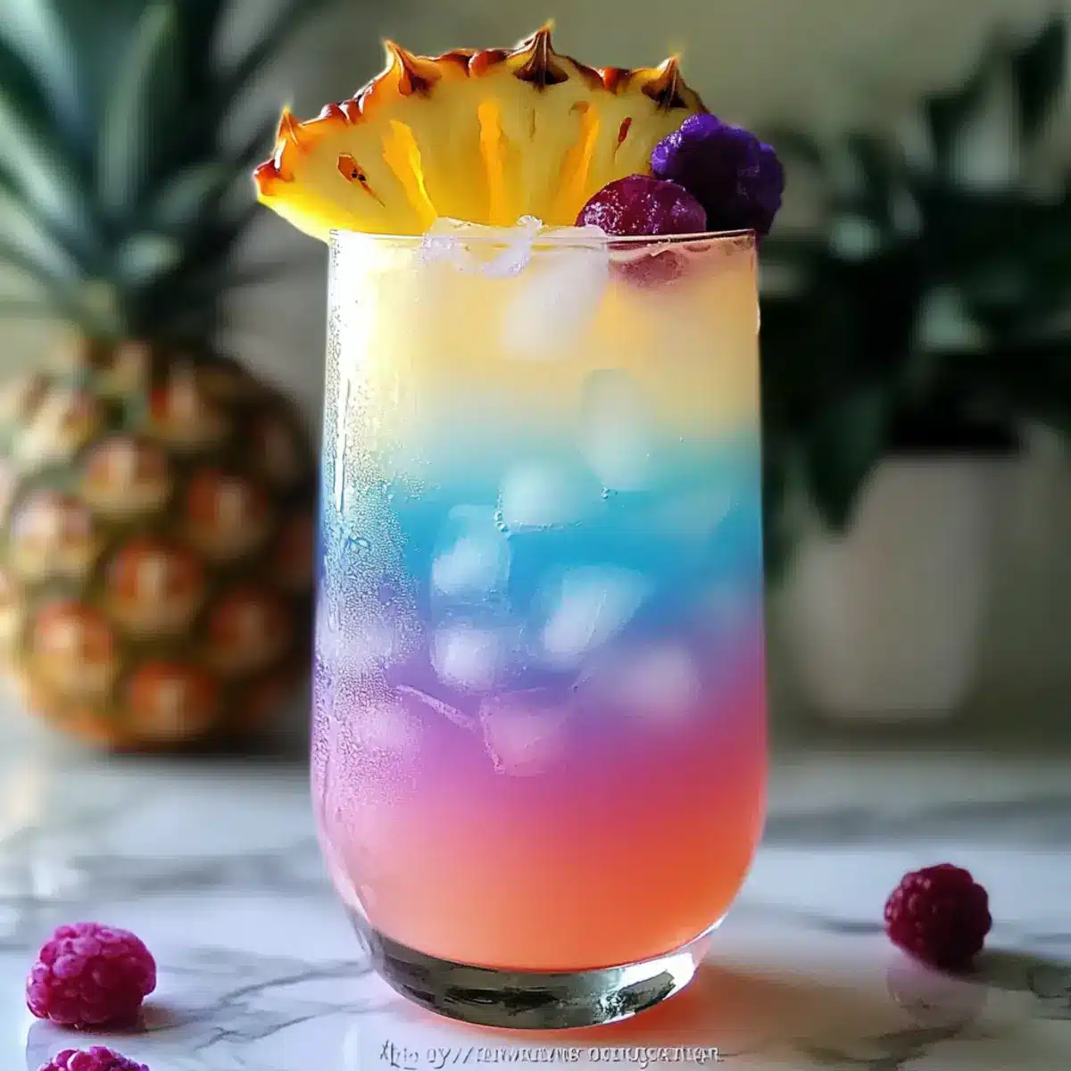 - Optional Garnish and Serve: Garnish with pineapple wedges or berries and add a colorful straw.