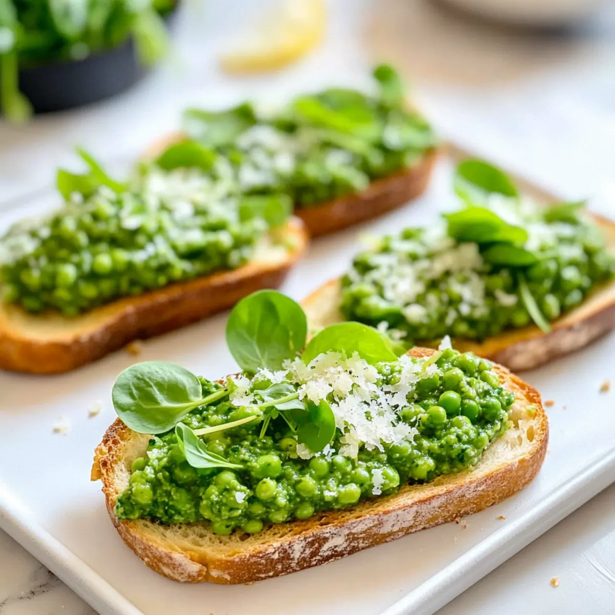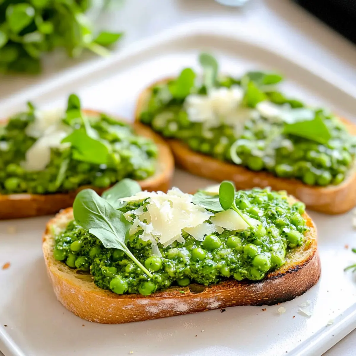 - Storage Wisdom: If making the pea topping in advance, store it in an airtight container in the fridge for up to 3 days, but assemble right before serving for optimal crunch.