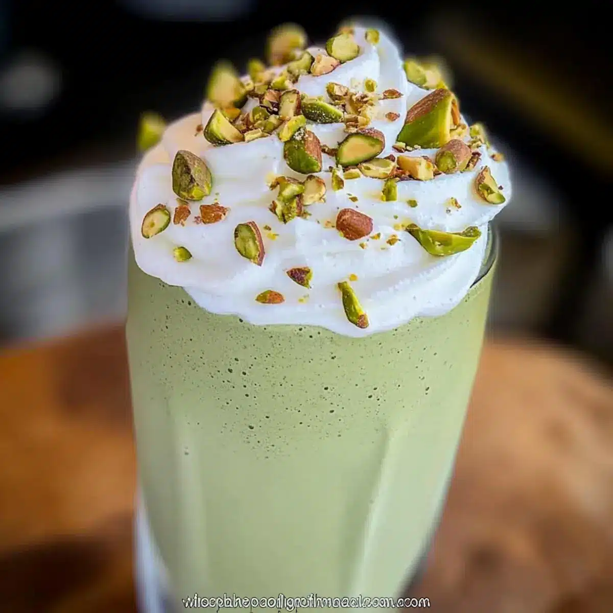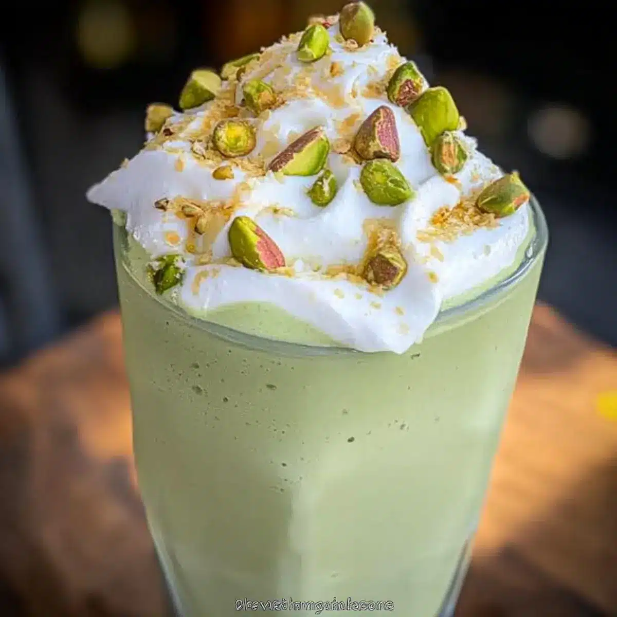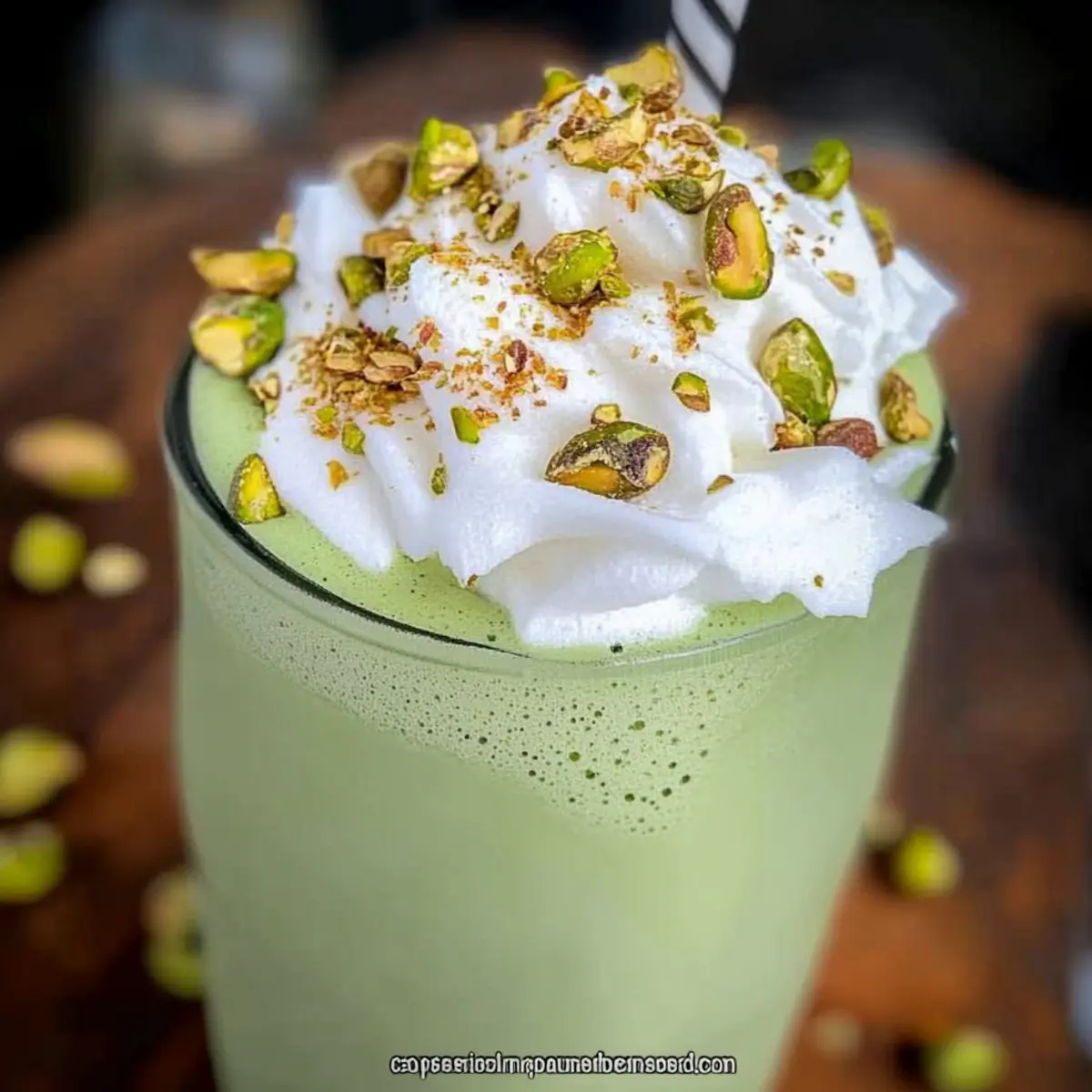 - Serve and Garnish: Pour the shake into glasses and top with whipped coconut topping and chopped pistachios.