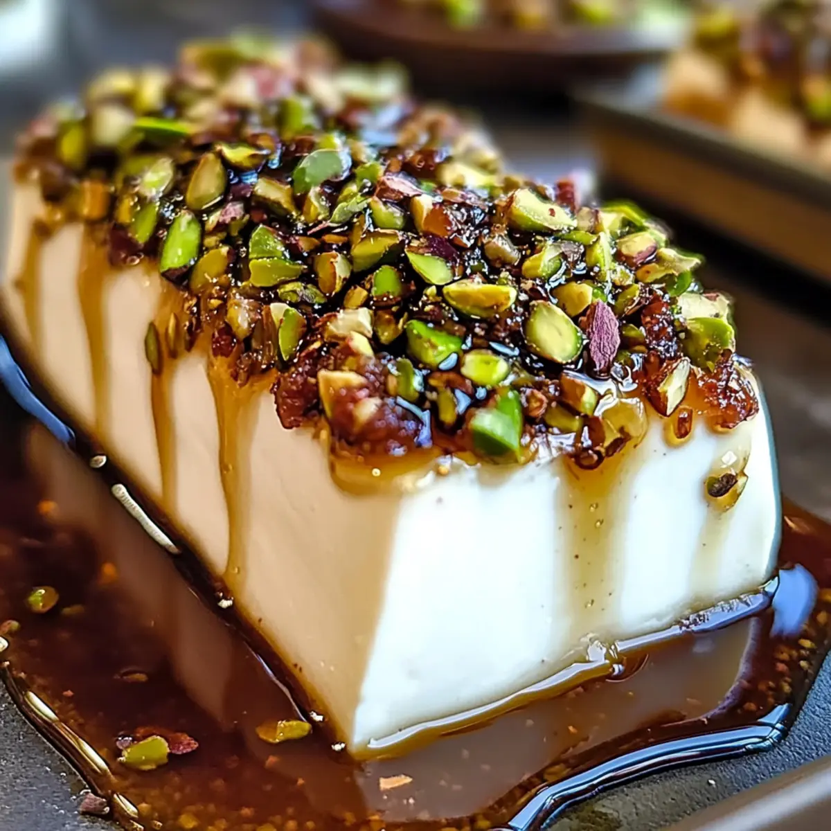 Generously drizzle honey over the goat cheese log, allowing it to cascade down the sides. This glaze adds a sweet touch that beautifully complements the creamy tang of the goat cheese and the nutty crunch of the pistachios. Aim for a glossy finish, making sure each bite will be infused with sweetness.