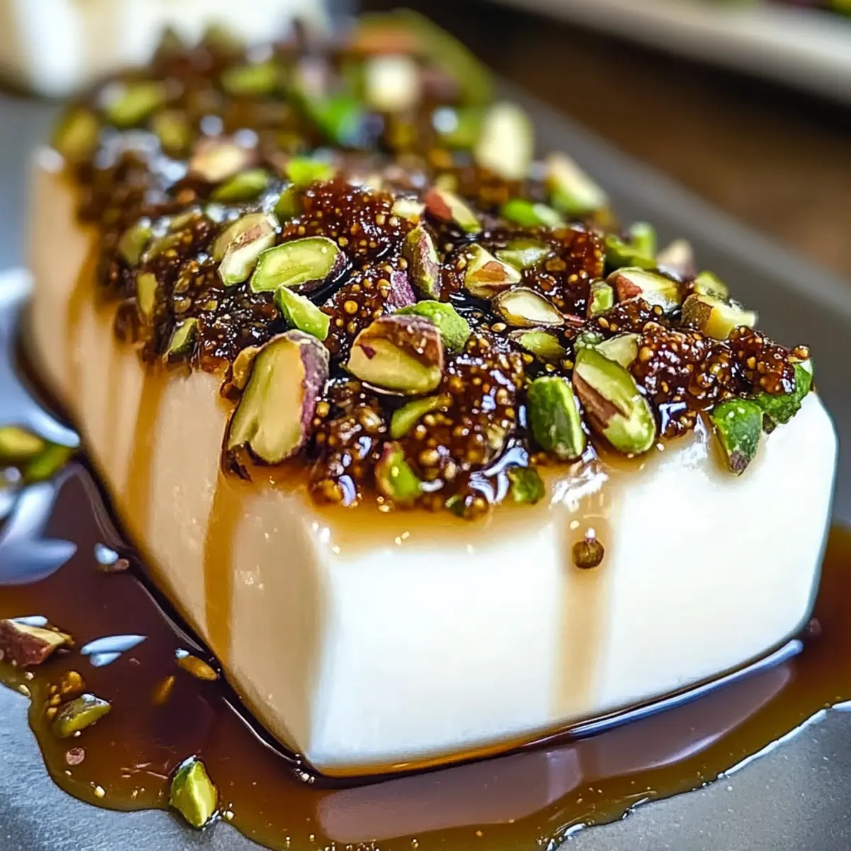 Drizzle the warmed fig spread over the honey-coated goat cheese log, creating a sweet topping that beautifully contrasts the savory flavors. Serve your Honey Fig Pistachio Goat Cheese Appetizer immediately alongside an assortment of crackers or sliced baguette. Enjoy the stunning presentation and delightful flavors with your guests!