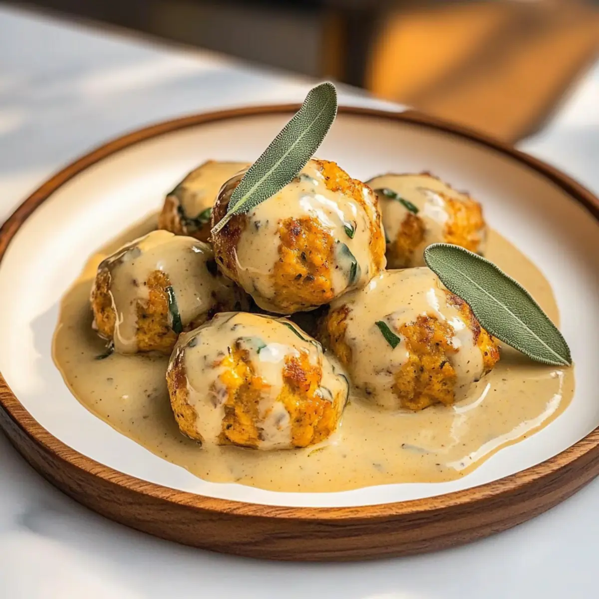 Once cooked, carefully plate the meatballs and cream sauce, sprinkling extra chopped sage and cracked black pepper on top for a beautiful touch. Serve your delicious Pumpkin Chicken Meatballs in Sage Cream Sauce over pasta, rice, or alongside a crisp green salad for a complete meal.