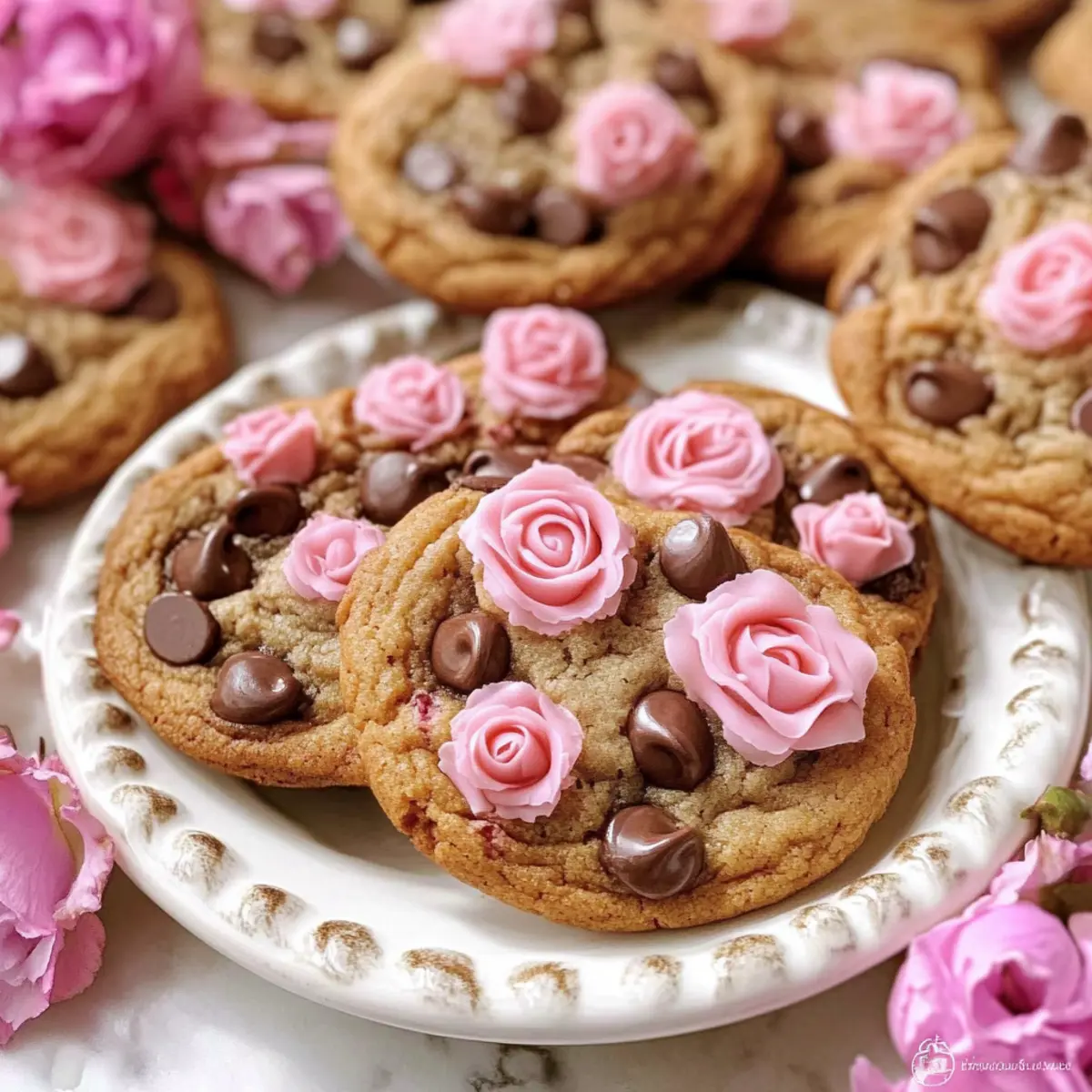 Rose Chocolate Chip Cookies with Chewy Floral Delight