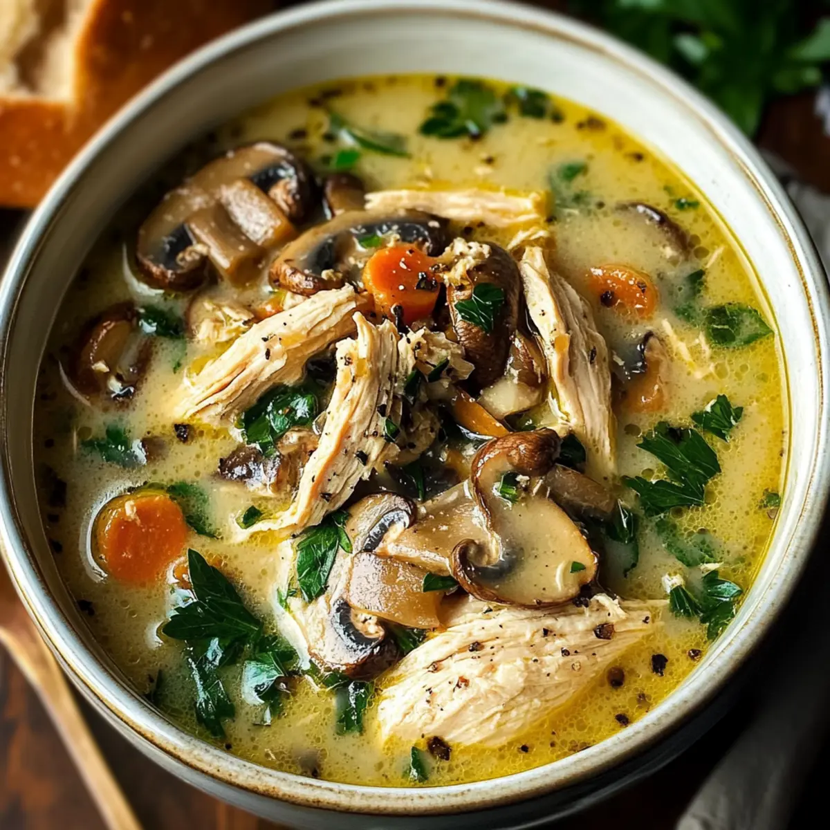 Cozy Comfort: This Rotisserie Chicken Mushroom Soup serves up hearty goodness that’s perfect for chilly nights or any time you need a warm hug in a bowl.
