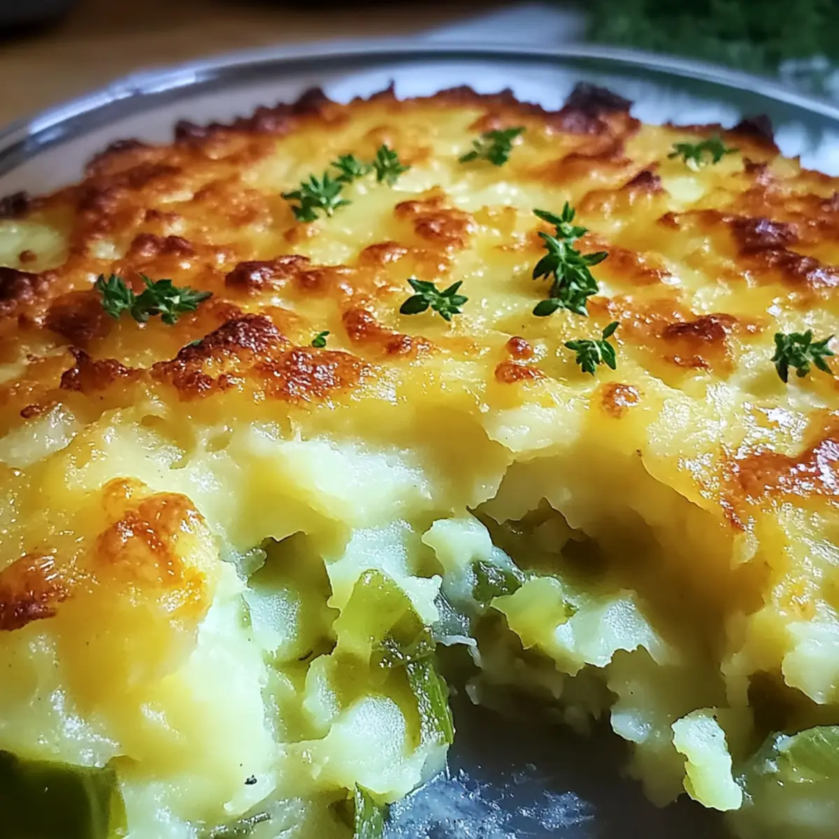 Flavorful Layers: Each bite delivers a delightful mix of soft potatoes and slightly crunchy cabbage, topped with a bubbly, golden cheese crust.