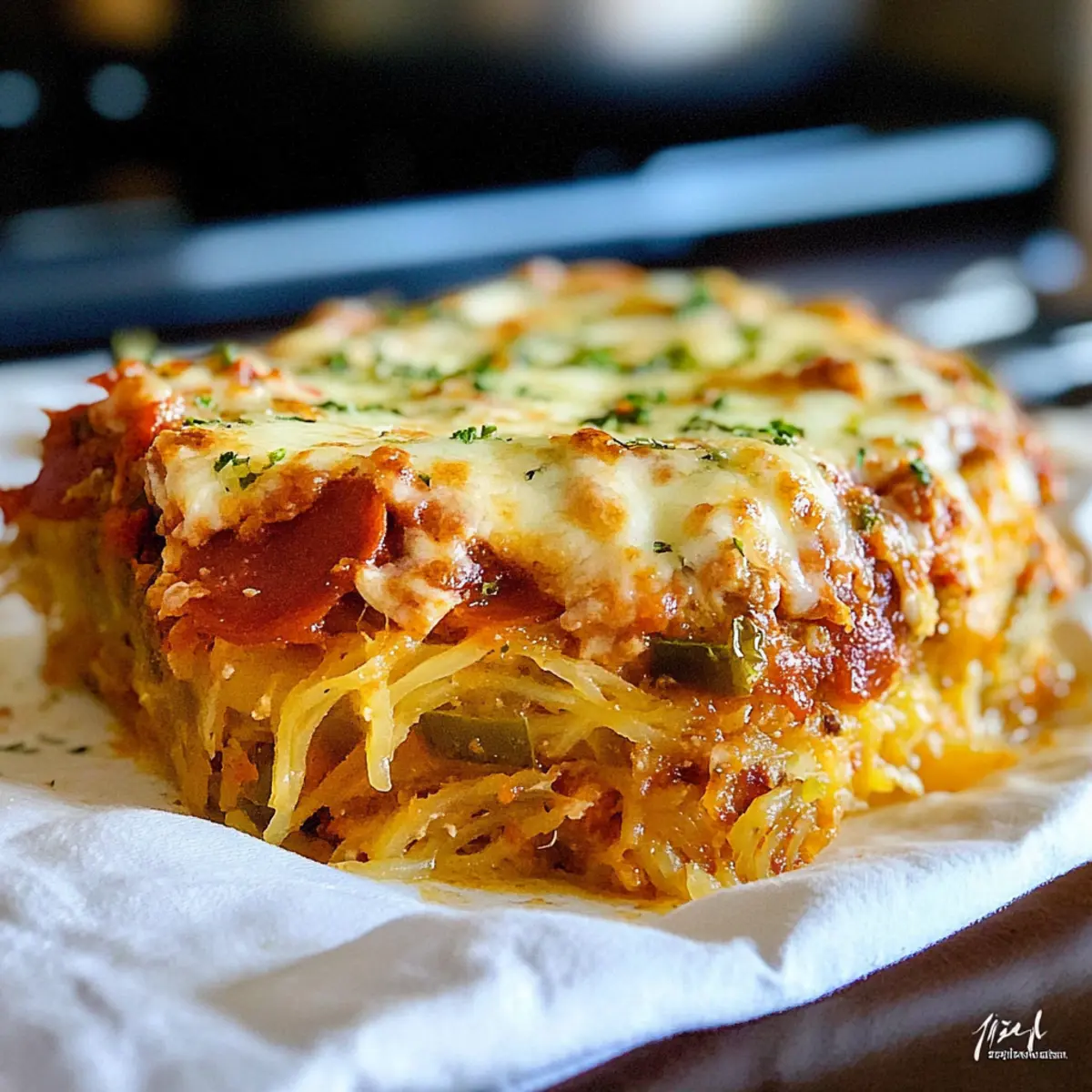 Remove the casserole from the oven and allow it to cool for a few minutes before serving. This makes it easier to cut and enjoy without losing its shape. Serve warm, garnished with fresh herbs like basil or parsley to add a touch of color and flavor. This Spaghetti Squash Pizza Casserole is perfect for family dinners, offering a satisfying meal that everyone will love!