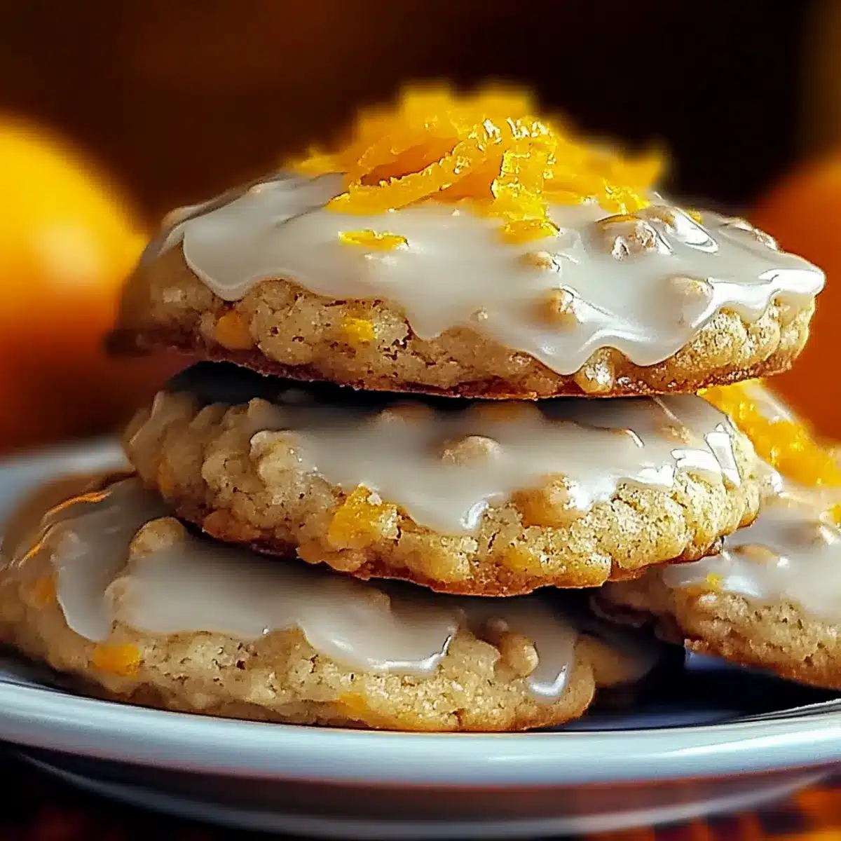 - Once cooled, drizzle the glaze over each cookie and garnish with fresh orange zest.