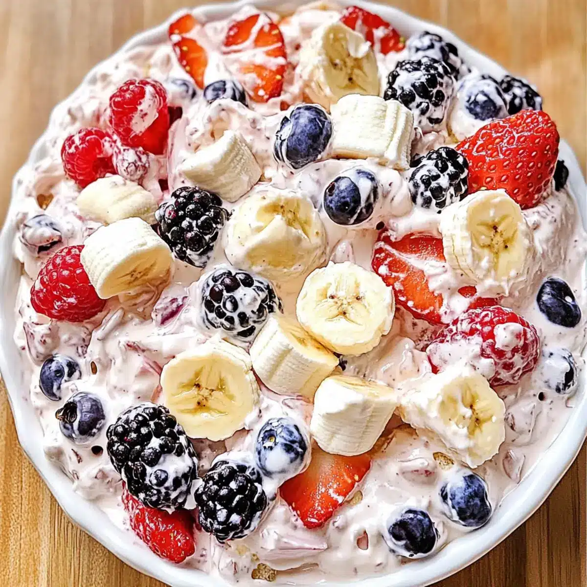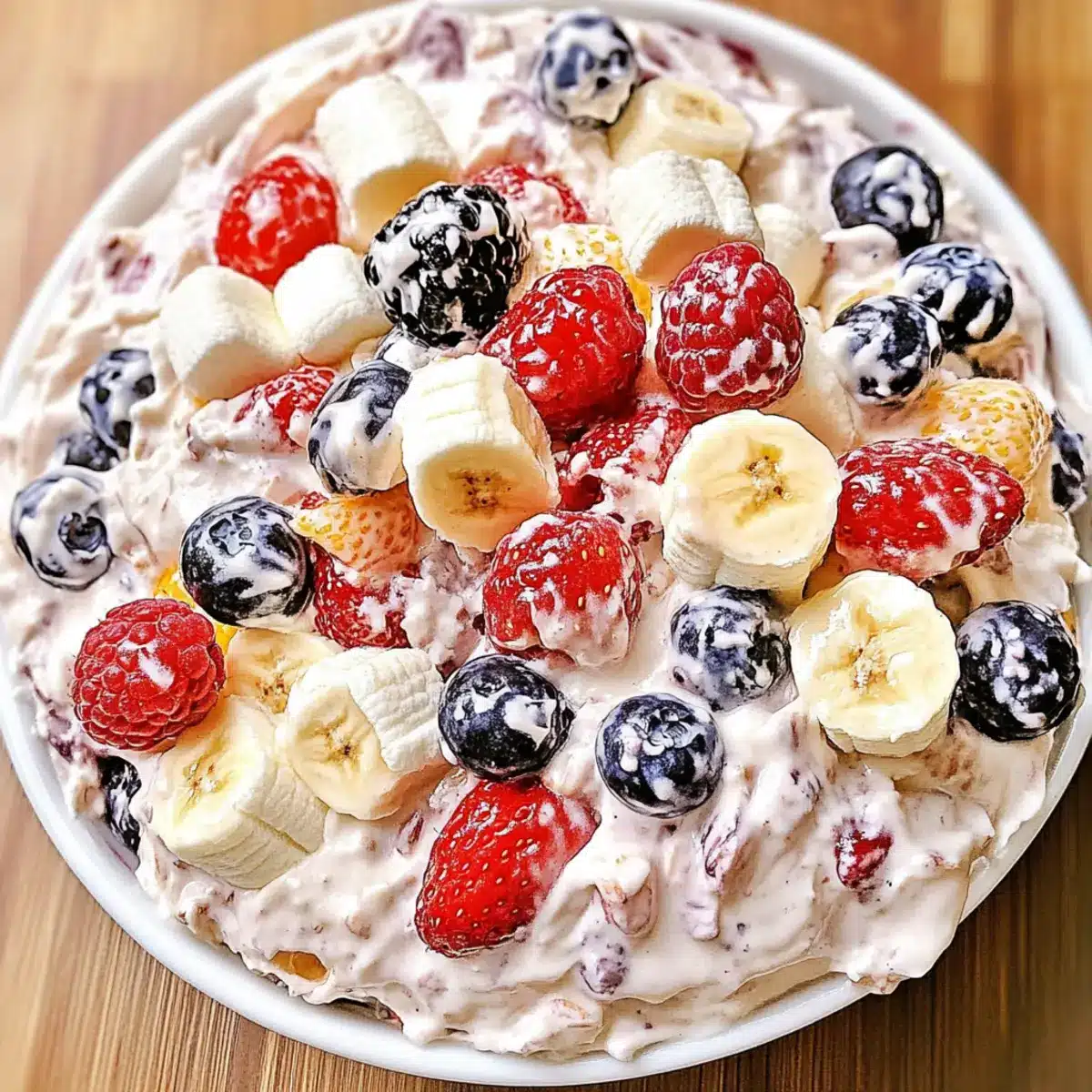 Very! To prevent bananas from browning, toss them in lemon juice right after slicing. This not only keeps them looking fresh but adds a hint of citrus flavor that complements the berries beautifully. If they still brown despite your precautions, just remember—it’s all about flavor!