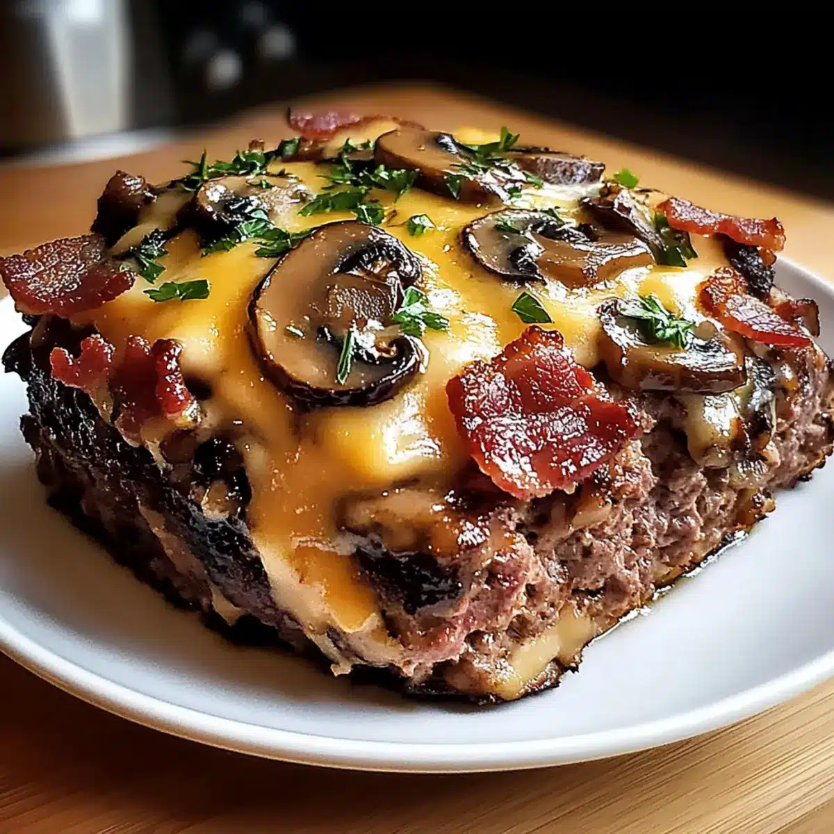 Comforting: This Swiss Bacon Mushroom Meatloaf brings a cozy feeling with each slice, perfect for family dinners or casual get-togethers.