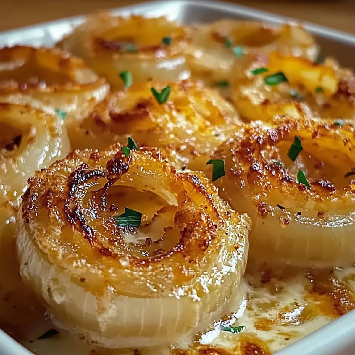 Add crispy, cooked bacon bits for a savory crunch that elevates the dish even further. The smoky flavor will harmonize beautifully with the sweet onions. -