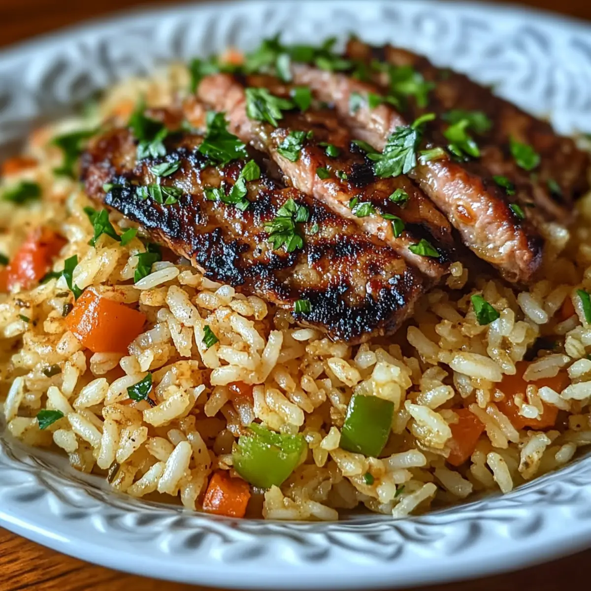 Grilled Chicken: Juicy grilled chicken pairs beautifully, its smoky flavor complements the rice’s spiced richness for a perfect dish.