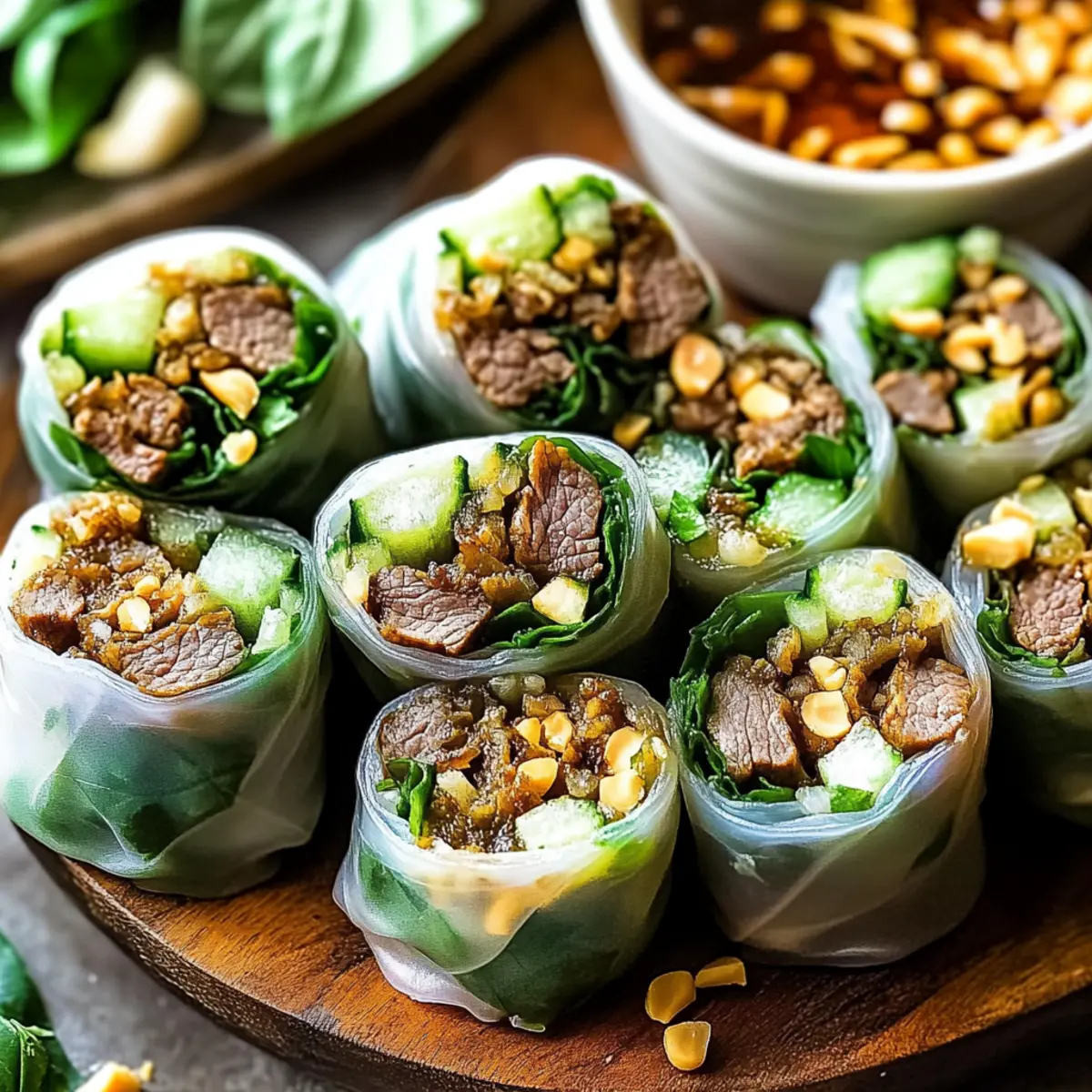 Quick, easy preparation: In just 20 minutes, you can serve up a meal that’s both appealing and satisfying. Customizable flavors: Feel free to swap ingredients based on your preference or dietary needs—ground chicken, tofu, or different sauces all work beautifully. Fresh, vibrant taste: Bursting with the aromatic goodness of Thai basil and ginger, every bite will transport you to flavor paradise. Perfect for any occasion: Whether it’s a weeknight dinner or a fun gathering, these rolls are a hit with everyone. For a more adventurous option, check out my recipe for Beef Bourguignon Savory for cozy nights in!
