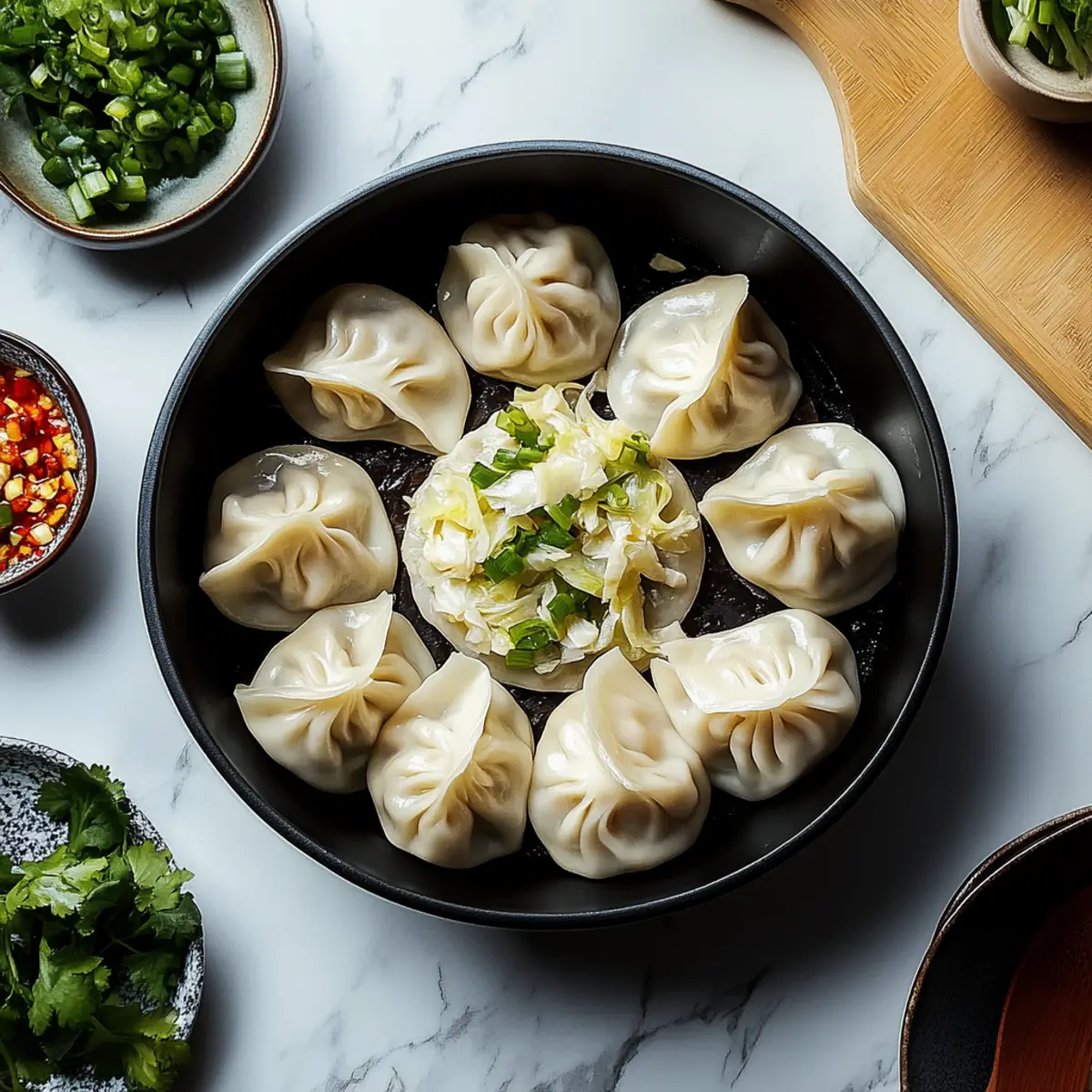 Once steamed, carefully remove the lid and allow any excess water to evaporate. Increase the heat slightly and let the dumplings crisp for another 1-2 minutes. This final touch gives your Traditional Chinese Dumplings a delightful texture, making them irresistibly crunchy on the outside while remaining tender and juicy inside.
