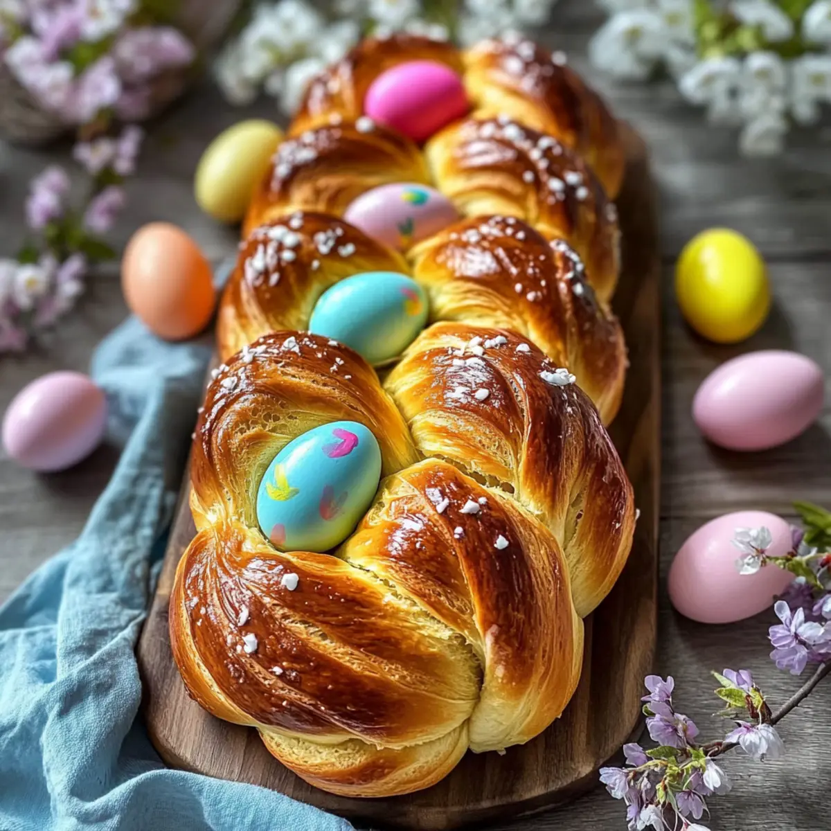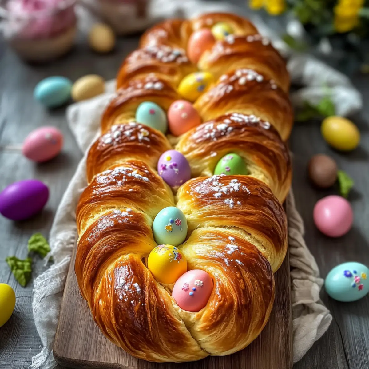 A Showstopper: Adorned with colorful eggs, it’s not just a bread, but an appealing centerpiece for your holiday festivities.