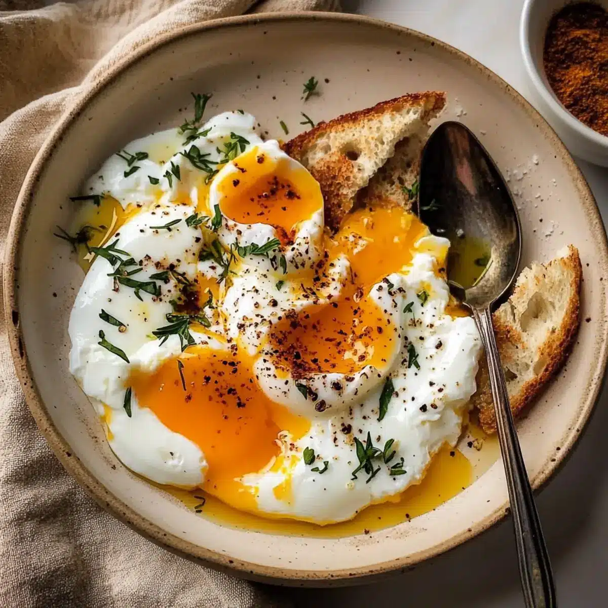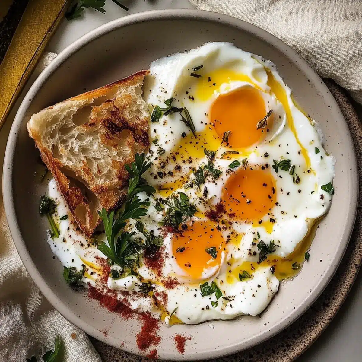 Crusty Bread: A must-have for scooping up the creamy yogurt and runny egg yolks. The texture pairs beautifully with the dish.