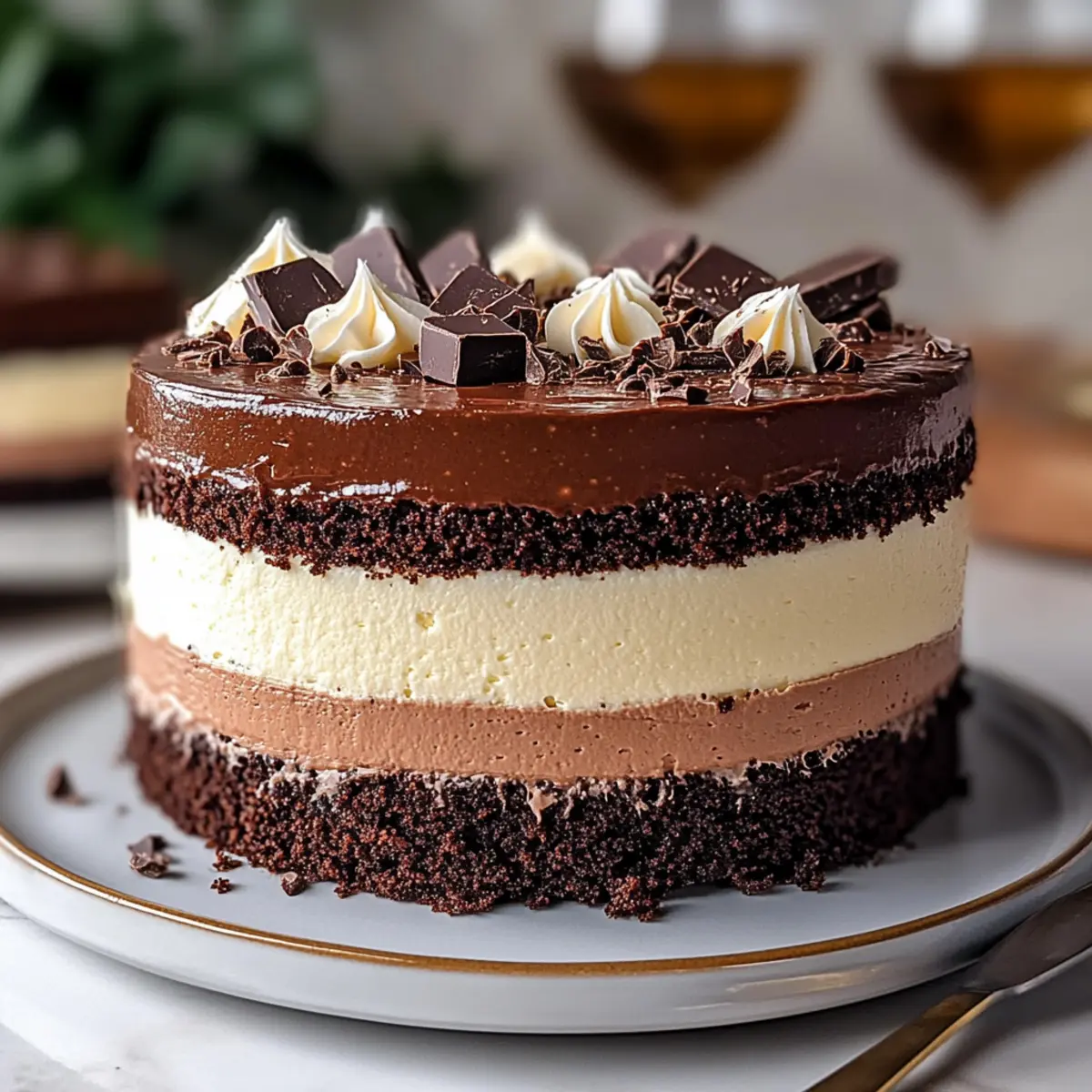 This Tuxedo Cake is sure to impress with its rich chocolate layers and creamy mousses, making it a delightful choice for any celebration!