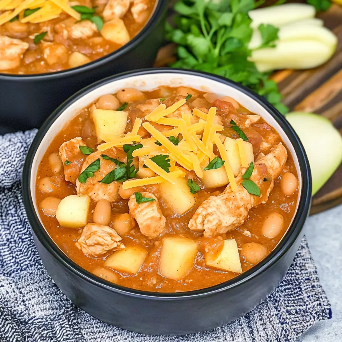 As the crisp air of fall wraps around us and the leaves begin their colorful descent, I find myself craving something cozy, something that feels like a warm embrace. Enter my White Cheddar Apple Chicken Chili, where sweet apples meet savory spices for a delightful twist on a seasonal favorite. This comforting dish isn’t just quick and easy to prepare; it also brings a unique rich texture that transforms ordinary weeknight dinners into memorable meals. Perfect for chilly evenings, this chili is a one-pot wonder that will surely warm your heart and fill your tummy. Are you ready to discover how simple ingredients can come together to create a bowl of pure joy?